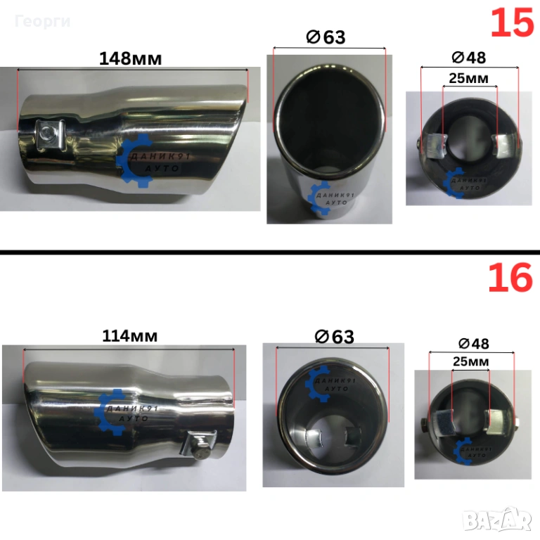 15. Накрайник за ауспух Ф48 х Ф63 х 148мм - 12,00 лв. ( 6,14 € )