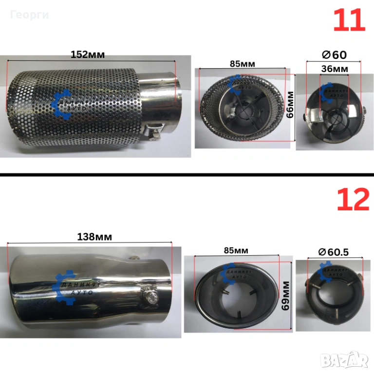 11. Накрайник за ауспух Ф60 х 85мм х 152мм - 14,00 лв. ( 7,16 € )