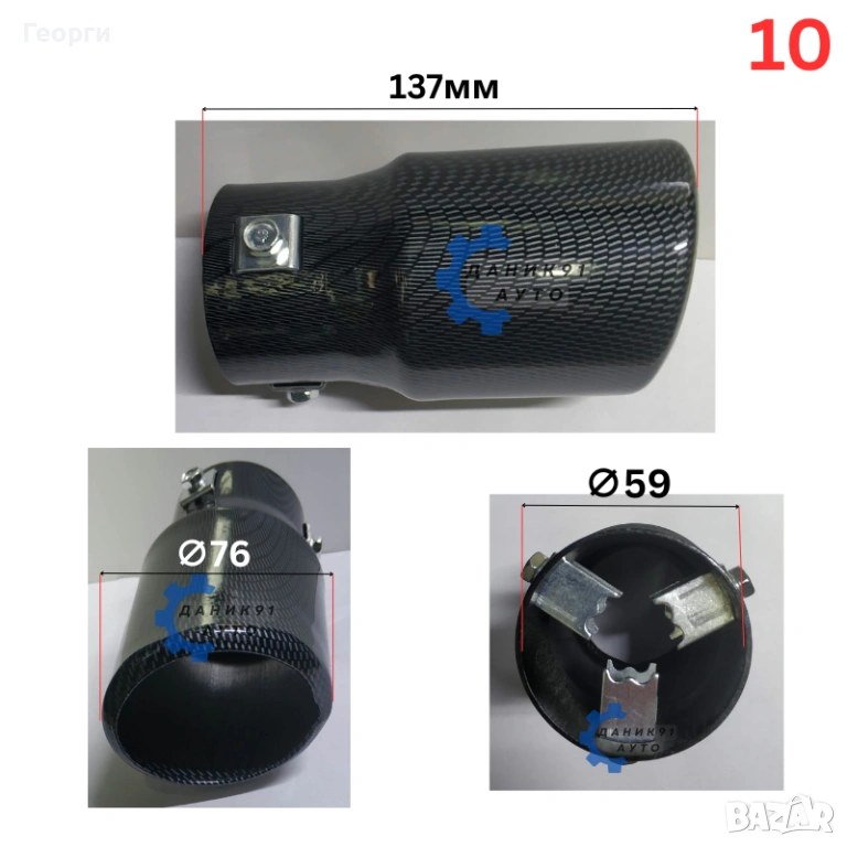 10. Накрайник за ауспух карбон Ф59 х Ф76 х 137мм - 18,00 лв. ( 9.20 € )