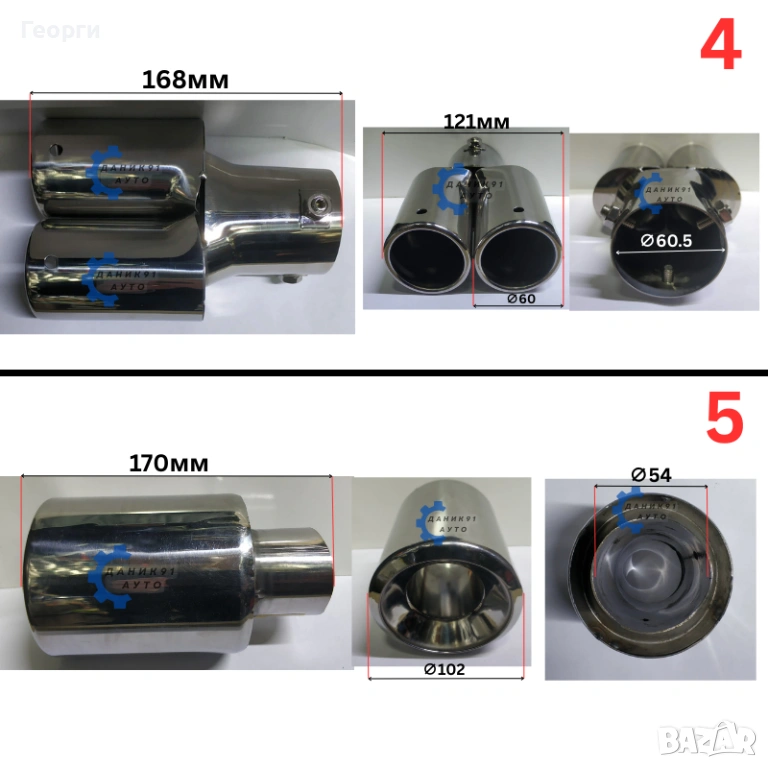 05. Накрайник за ауспух Ф54 х Ф102 х 170мм - 17,00 лв. ( 8.69 € )