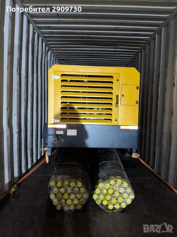 В същия контейнер пътуват и два винтови компресора,единият е 13 кубика, а другият е 18 кубика