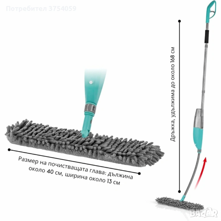 Тип: спрей моп за сухо и мокро почистване