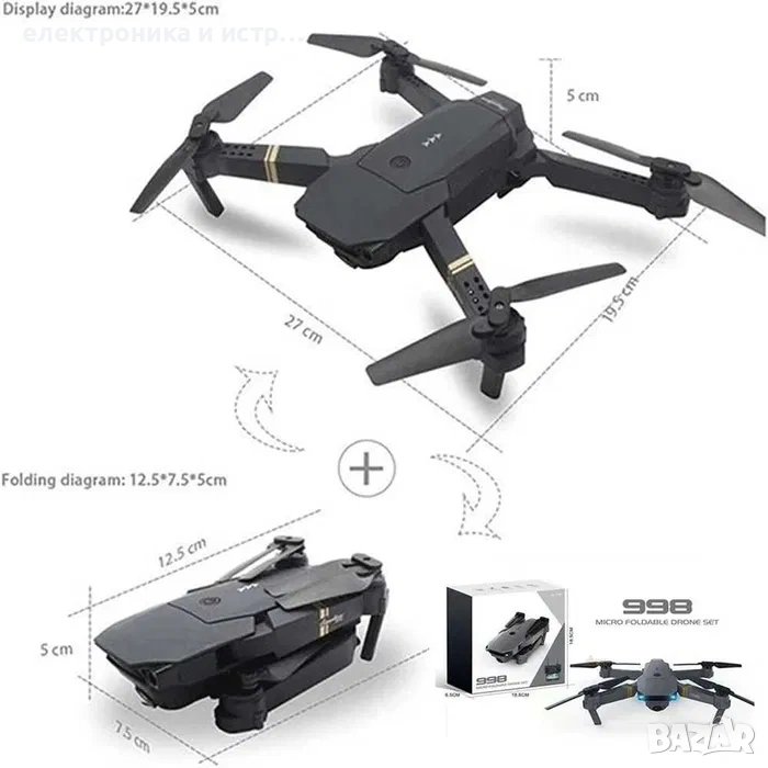 Сгъваем дрон 998 Pro с HD камера, WIFI и приложение за телефона