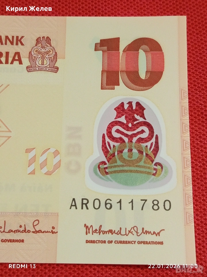 Екзотична банкнота 10 найра 2013г. Нигерия перфектно състояние за КОЛЕКЦИОНЕРИ 53230 → Обява 53185510