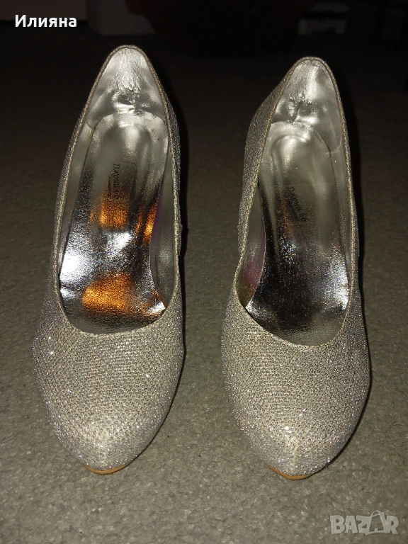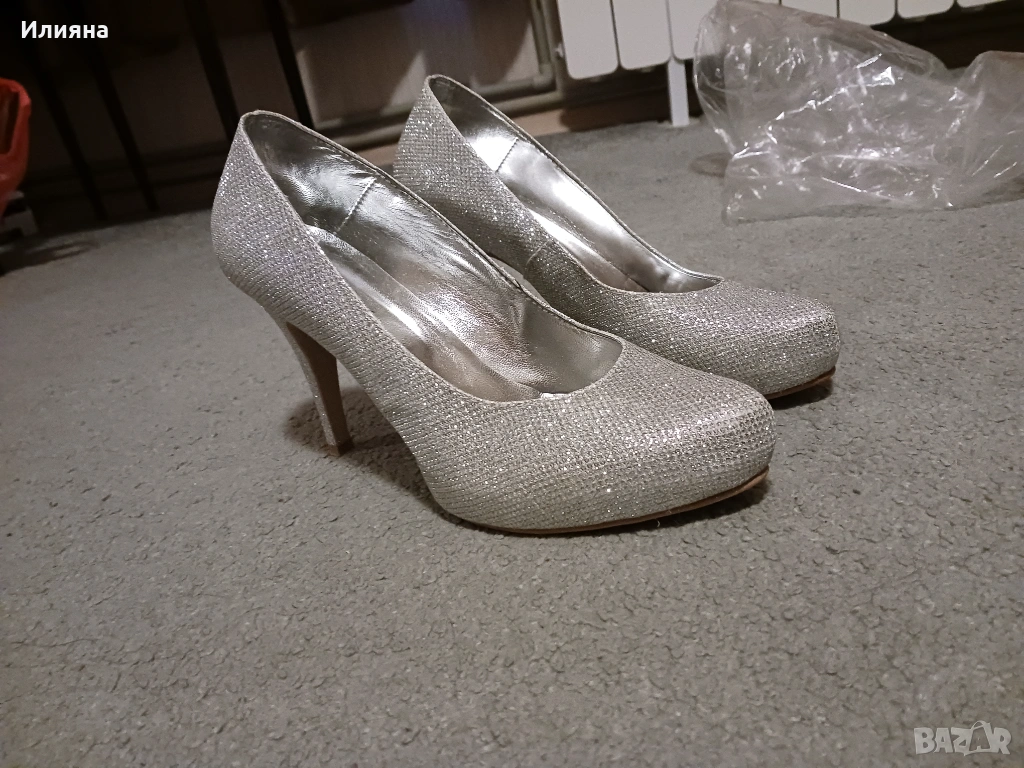 Нови!Сребристи лъскави токчета 38 номер → Обява 53185551