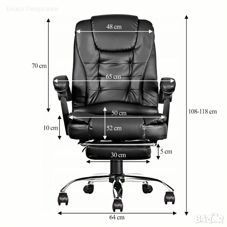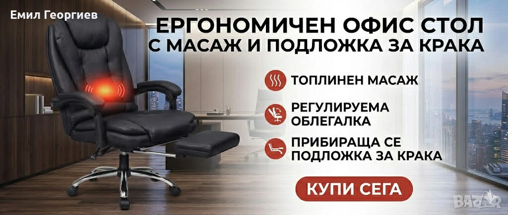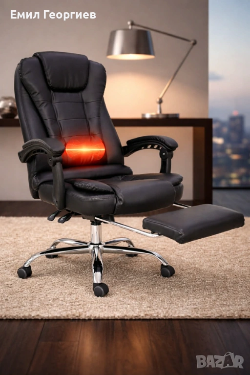 🪑 Ергономичен офис стол с масаж и подложка за крака