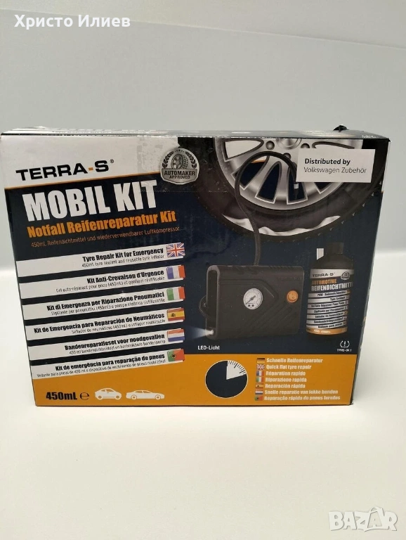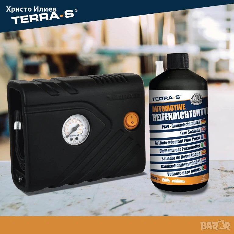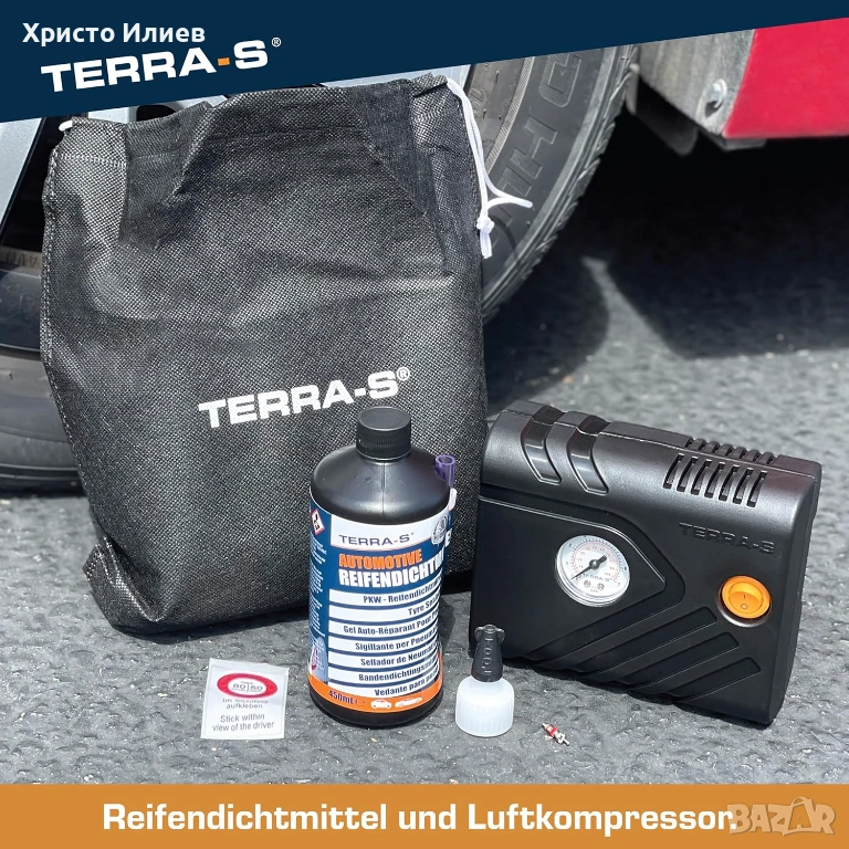 Комплект за ремонт на автомобилни гуми Terra-S с компресор