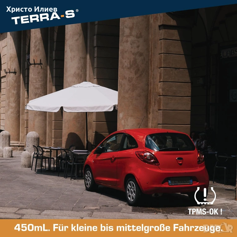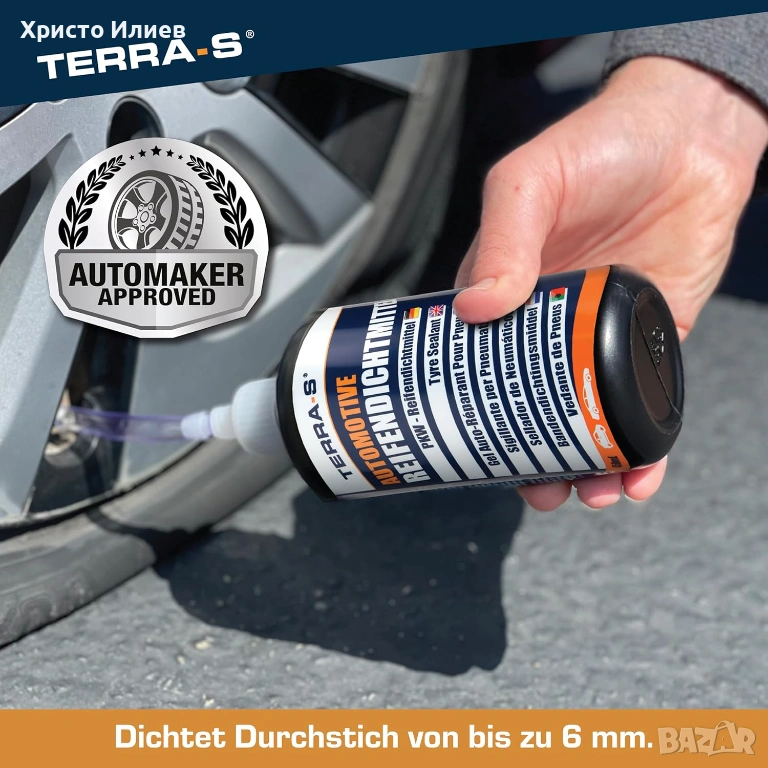 Уплътнител (450 мл): За бързо запечатване на малки пукнатини и пробиви в гумите