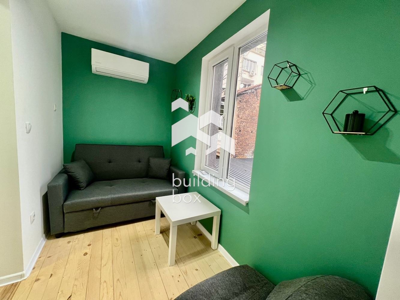 Билдинг Бокс предлага под наем преустроен тристаен апартамент, находящ се в центъра на София.
