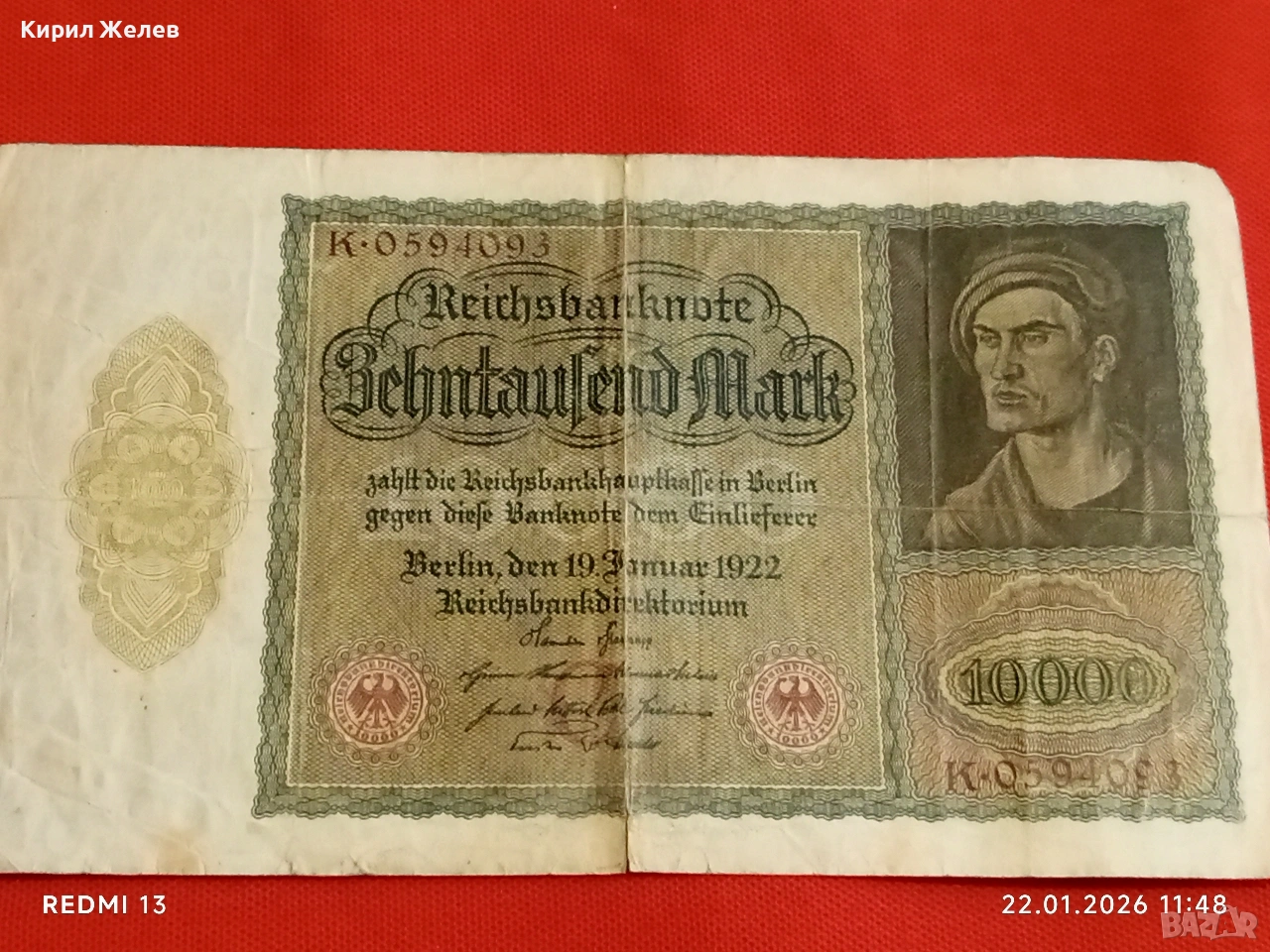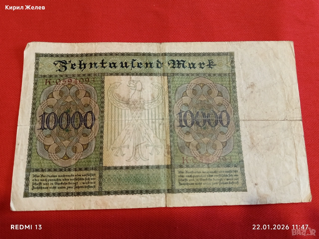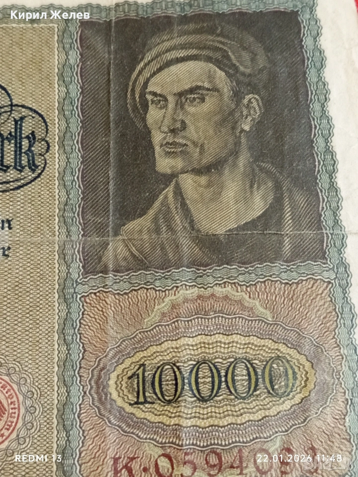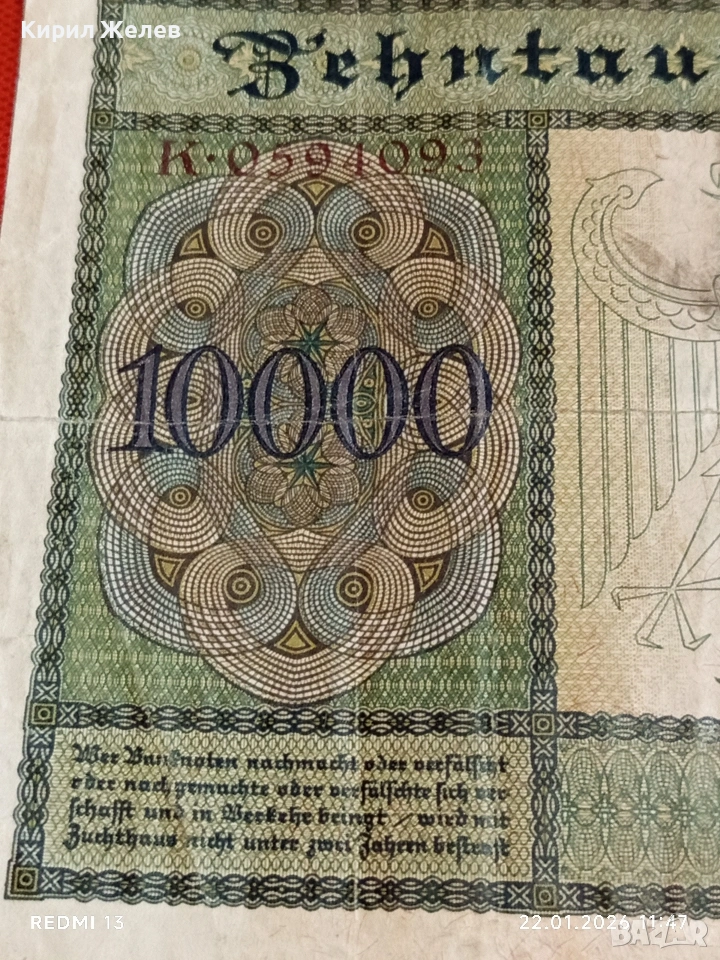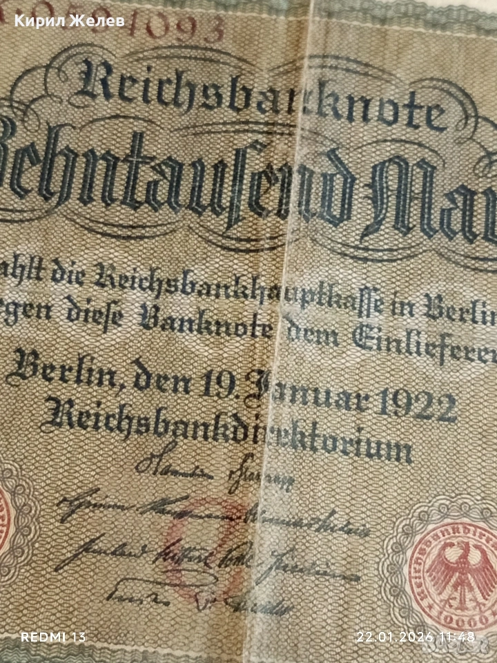 Райх банкнота 10 000 марки 1922г. Германска империя рядка за КОЛЕКЦИЯ 53271 → Обява 53186148