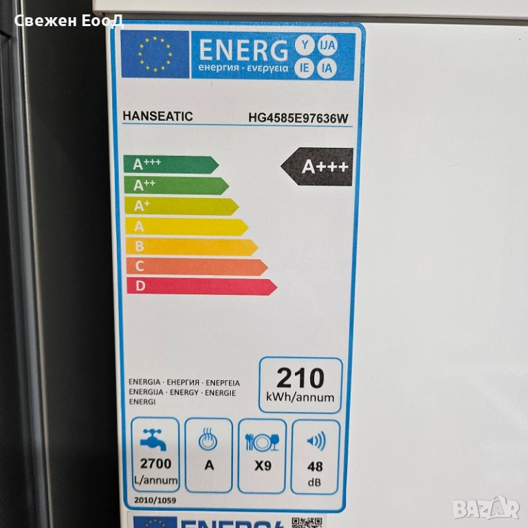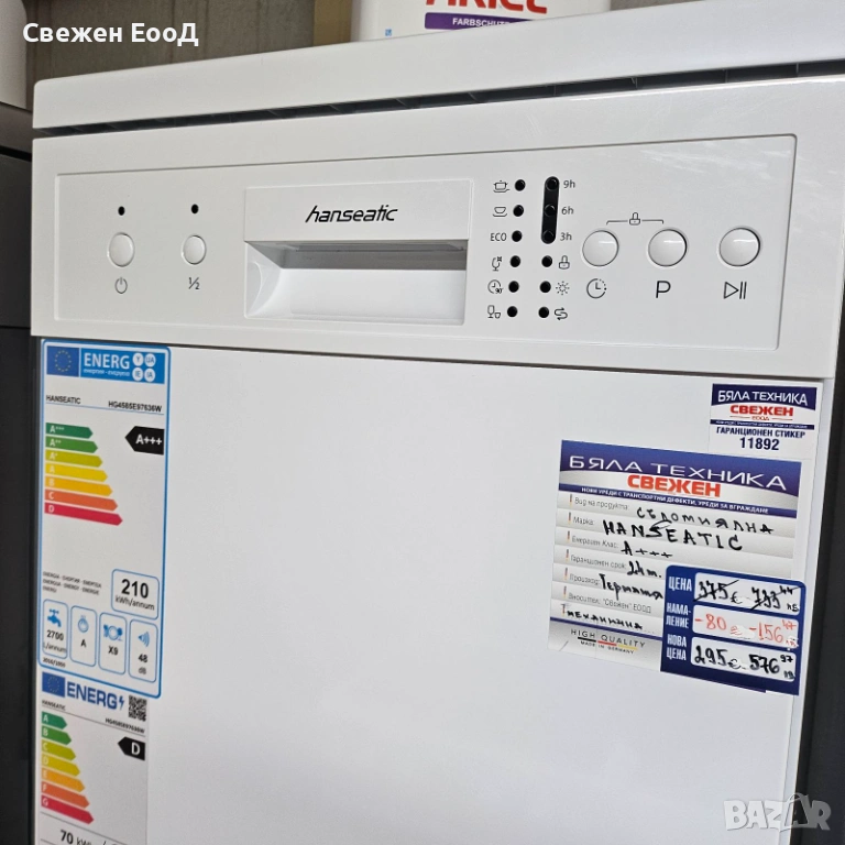 HANSEATIC HG4585E97636W е свободностояща съдомиялна машина. С размери 44,8 x 84,5 x 60 см (Ш x В x Д), тя може да се монтира както свободностояща, така и под плот. Това означава, че се вписва в почти всяка вградена кухня и може да бъде поставена свободно. С капацитет от 9 комплекта, тя лесно отговаря на нуждите на домакинства до четирима души. За перфектен блясък, нежната програма е особено ефективна за почистване на чаши. Интензивната програма надеждно почиства всички видове съдове, дори с упорити или засъхнали замърсявания. Еко настройката позволява изключително енергийно ефективно почистване на чинии и чаши. Съдомиялната машина разполага и с бърза програма, която значително намалява времето за цикъл на измиване и по този начин значително намалява разхода на вода. Системата за защита от вода автоматично изключва подаването на вода в случай на авария. Функцията за отложен старт ви позволява да изберете кога да започне цикълът на измиване. Съдомиялната машина е абсолютно надежден помощник ден след ден. Тези, които търсят функционална и издръжлива съдомиялна машина, ще намерят точно това, от което се нуждаят, тук.