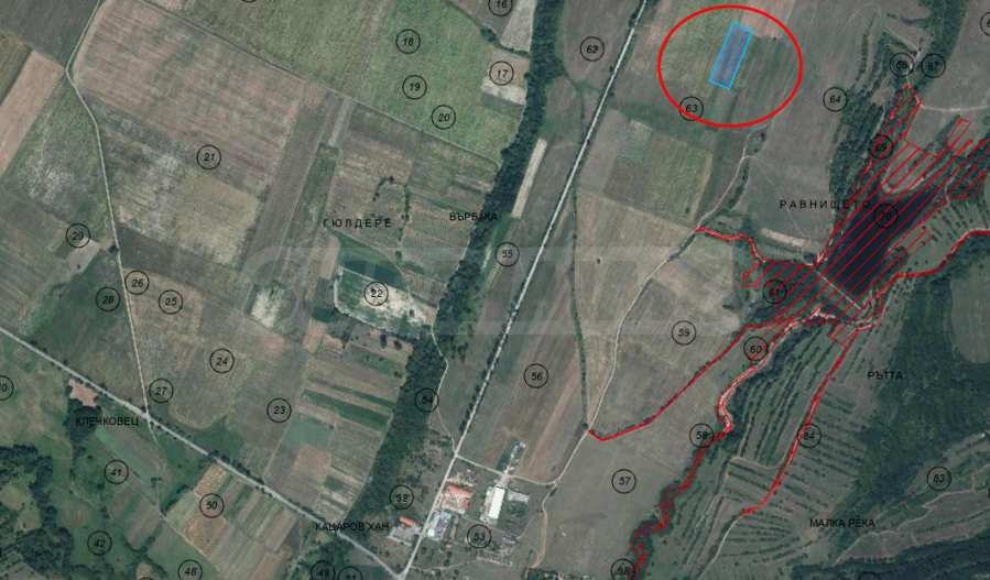 Представяме земеделска земя с площ 7 600 кв.м, за продажба в района на общ. Горна Малина, с. Долно Камарци, местност Равнището-Чардака.