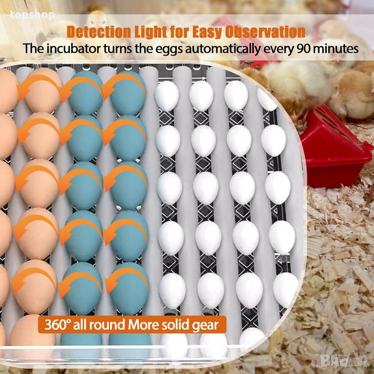 【Автоматично въртене на яйцата】Технология за въртене на яйцата с червячни зъбни колела, по-равномерно нагряване, по-висока степен на излюпване. Червячните зъбни колела са подобрени, за да бъдат по-стабилни, а животът им е увеличен с пет години.