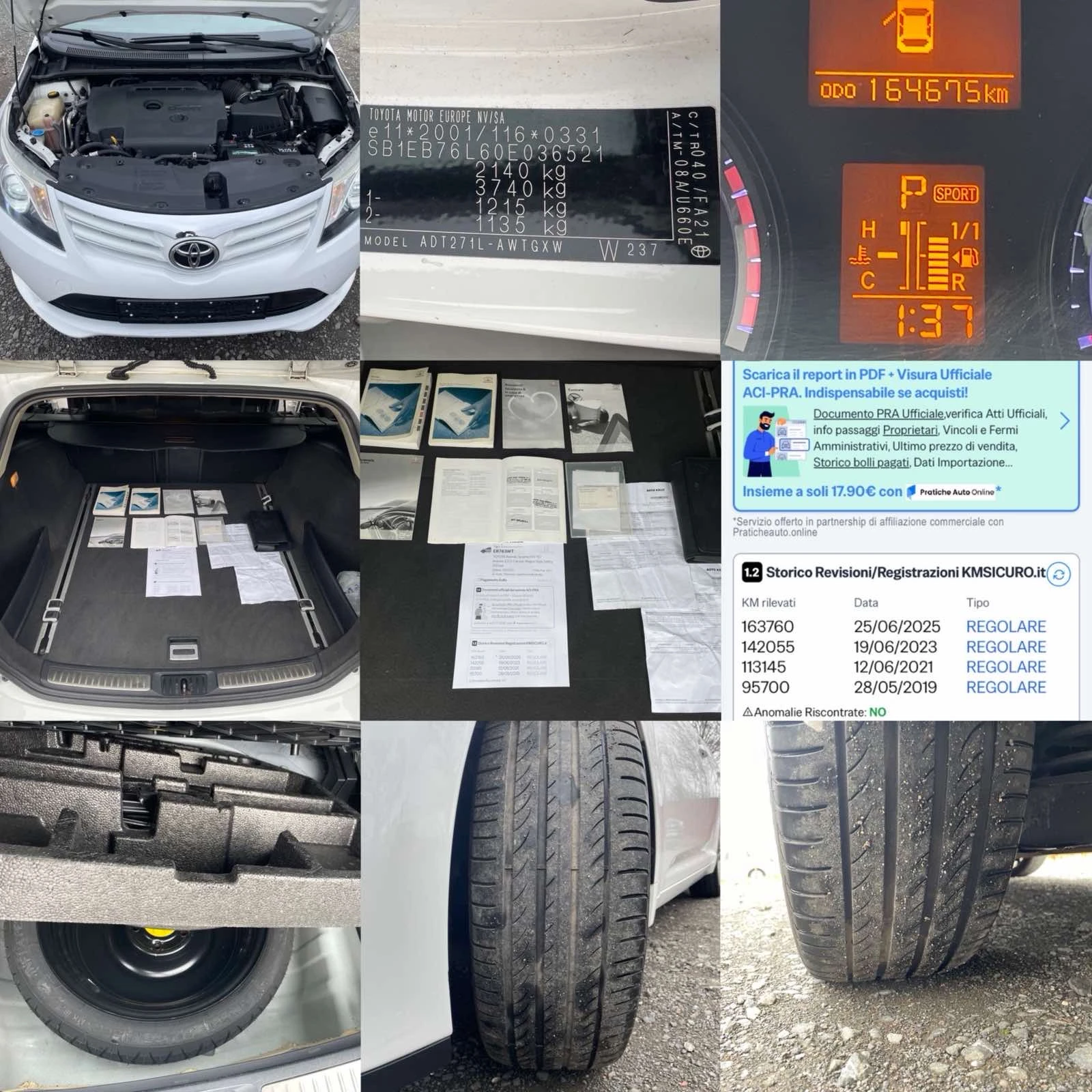 https: //youtu. be/9xaTXDQL3vg? si=n0fKSDYXyF-INyWQ 👉 ЛИЗИНГ 👉 Възможност за закупуване на ЛИЗИНГ или Банков КРЕДИТ 👉 (НЕ ПРЕДЛАГАМЕ СОБСТВЕН ЛИЗИНГ) 👉 Одобрение до 30 минути ! 👉 Без първоначална вноска , на равни месечни Вноски ! 👉 Бързо и лесно кандидатстване само с лична карта 👉 По Ваше желание може да се изготви индивидуална лизингова оферта 👉 Работим с най-добрите лизингови компании на пазара - Нов внос от Слънчева ITALY 🇮🇹 - Разполагаме със снимки правени в момента на покупката в Italia - Toyota Avensis Avensis Wagon III - Lounge Restyling / Facelift Stile Safety - Full optional - 2. 2 D-4D 110кw(150 к. с) - Automatic 6-Speed F1 - По - нисък пътен данък МПС и ГО - Стандарт за емисиите EURO 5A - Нов внос от Слънчевата ITALY - Без удари, ръжди и корозия - Разполагаме със снимки правени в момента на покупката на автомобила в Italia - Година на производство 09/05/2013г - ГАРАНТИРАН ИЗМИНАТ ПРОБЕГ 164675 км - VIN номер SB1EB76L60E036521 - ER783WT - Възможно най високо ниво на изпълнение Full optional - Отличен за управление с много възможности за използване от различни потребители - Общо Състояние ОТЛИЧНО за годините и километрите си - Тип на купето Комби - Врати 5 - Брой места 5 - Хомологация M1 - AC FAMILIARE - Височина 1480 ММ - Дължина 4765 ММ - Широчина 1810 ММ - Тегло 1570 кг - Максимално тегло 2140 кг - Максимален обем на багажника 1609 литра - Минимален обем на багажника 543 литра - Двигател (модификация) - Разположение на двигателя Отпред, напречно - Обем на двигателя 2231 см3 - Максимална мощност при 3600 rpm - Въртящ момент 310/2000 Nm/rpm - Мощност 150 HPW - Горивна система Дизел Комънрейл - Разположение на цилиндрите Редови - Брой цилиндри 4 - Модел на двигателя 2AD FHV - Брой скорости (автоматични) 6 - Задвижване Предно - Предни спирачки Дискови вентилирани - Задни спирачки Дискови - Размер на гумите 225/45 R18 - Размер на джантите R18 - Трансмисия; - Предно окачване McPherson - Задно окачване напречен носач - Разход на гориво градско 8. 4 Литра/100 км - Разход на гориво извънградско 5. 5 Литра/100 км - Разход на гориво комбинирано 6. 6 Литра/100 км - Обем на резервоара 60 литра - Максимална ограничена скорост 205 км/ч - Ускорение от място до 100 км/ч 9. 8 сек - Благодарим ви, че посетихте страницата ни и ви пожелаваме успех в избора на автомобил - Работно време 9: 00 до 18: 00 - Почивен ден НЕДЕЛЯ