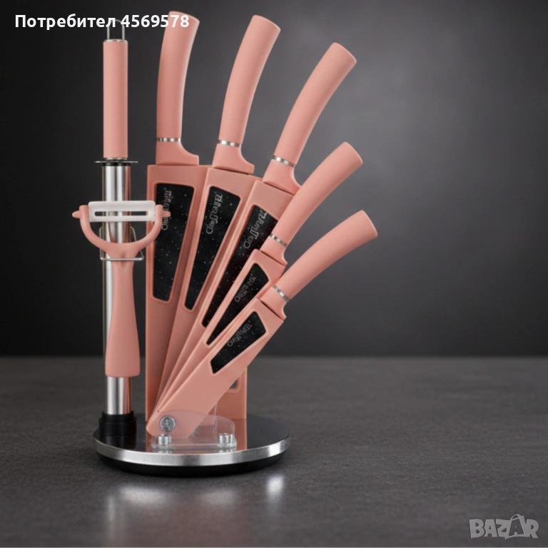 🌟Комплект кухненски н о ж о в е 8 в 1 с въртяща се стойка Cheffinger за подредена кухня!🌟