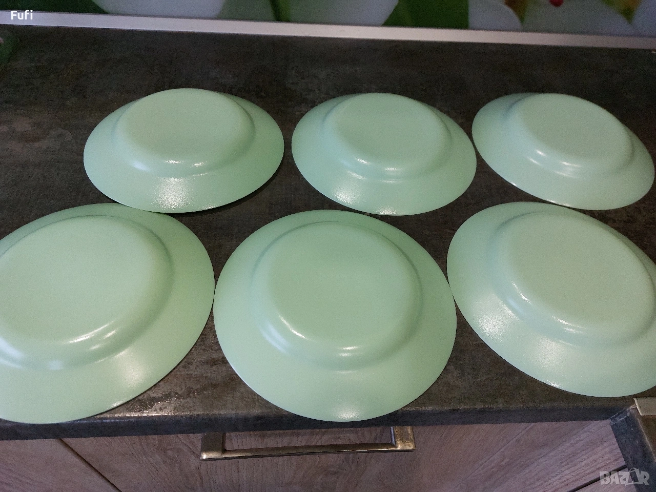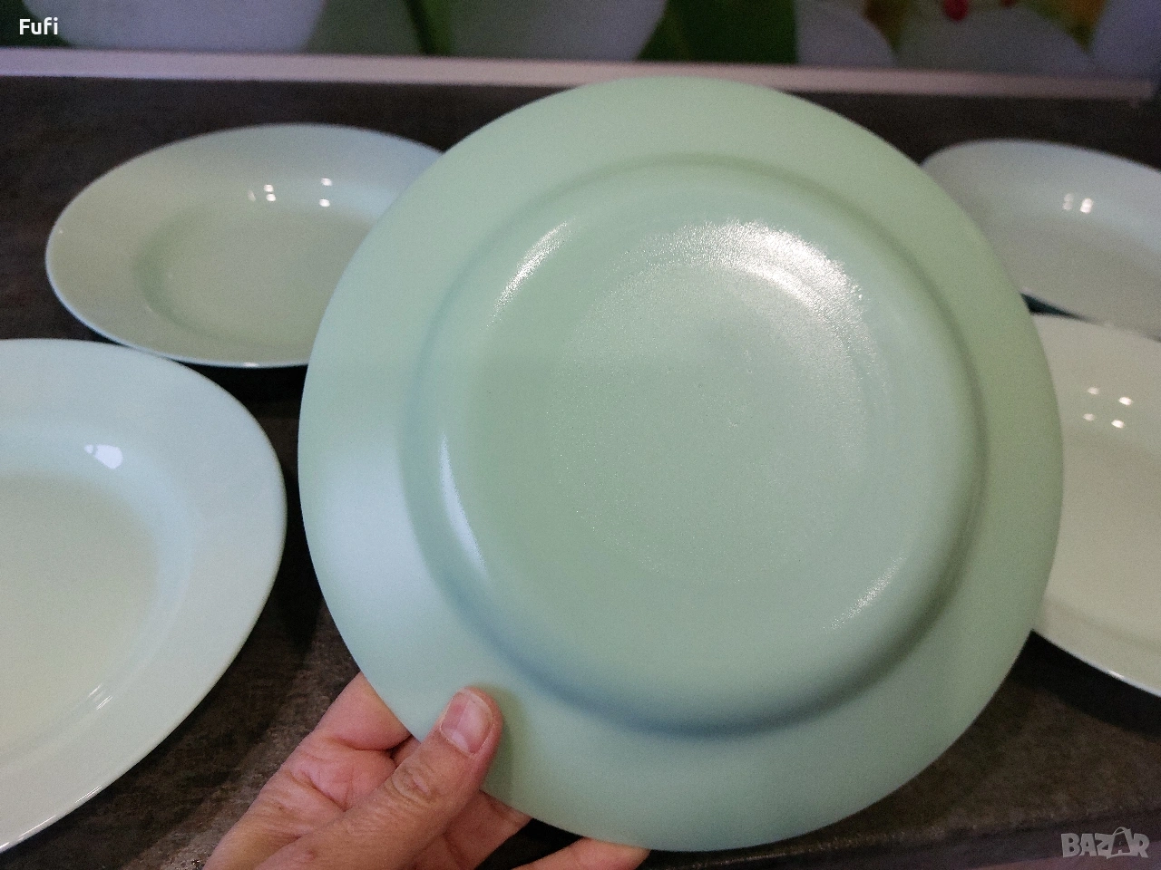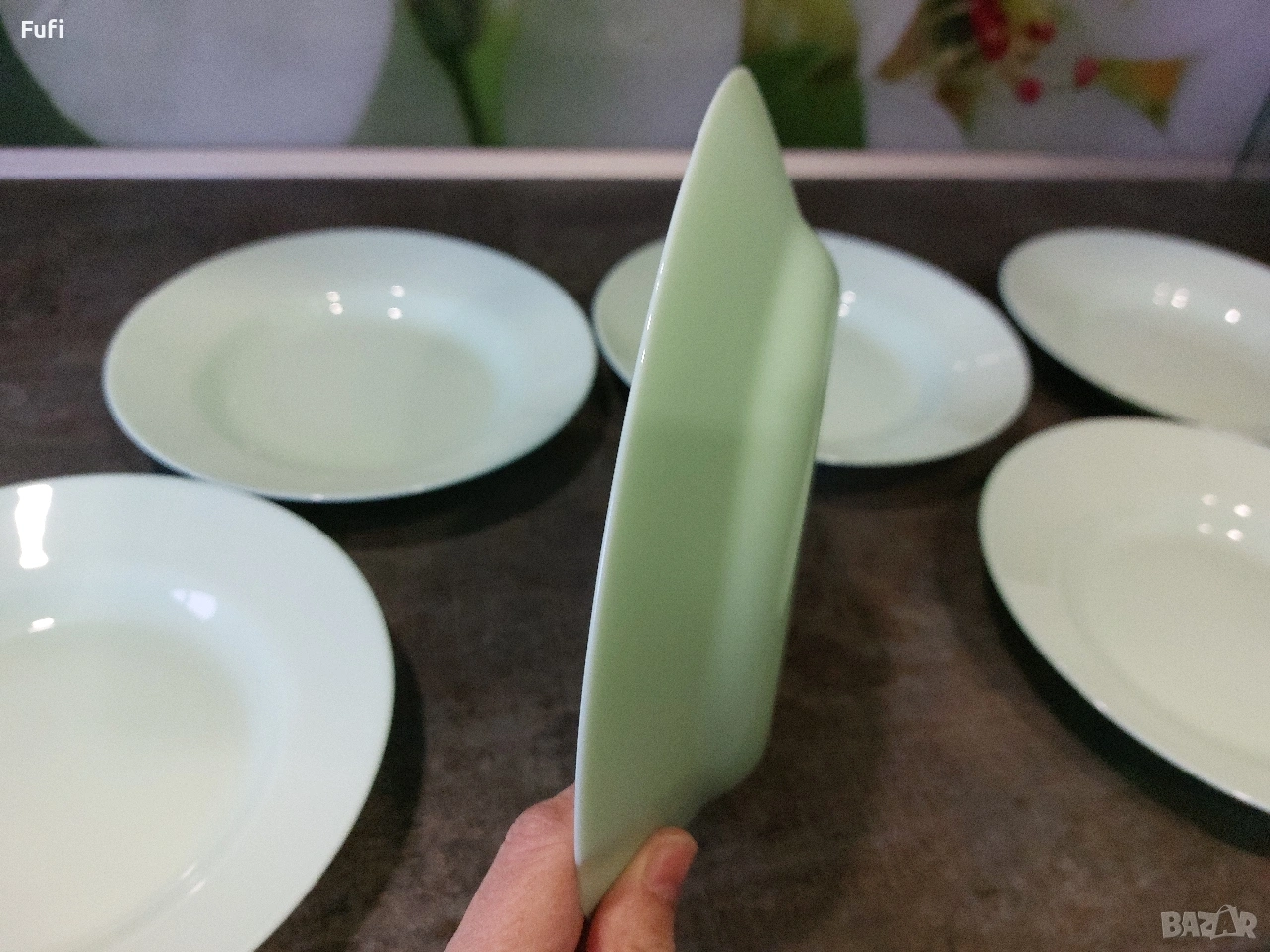 11 евро, за 6 броя нови чинии, марка Luminarc, дълбоки, 22 см диаметър, светло зелени → Обява 53187245