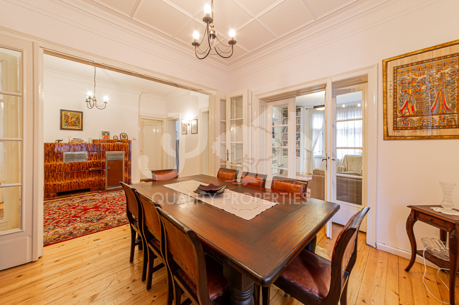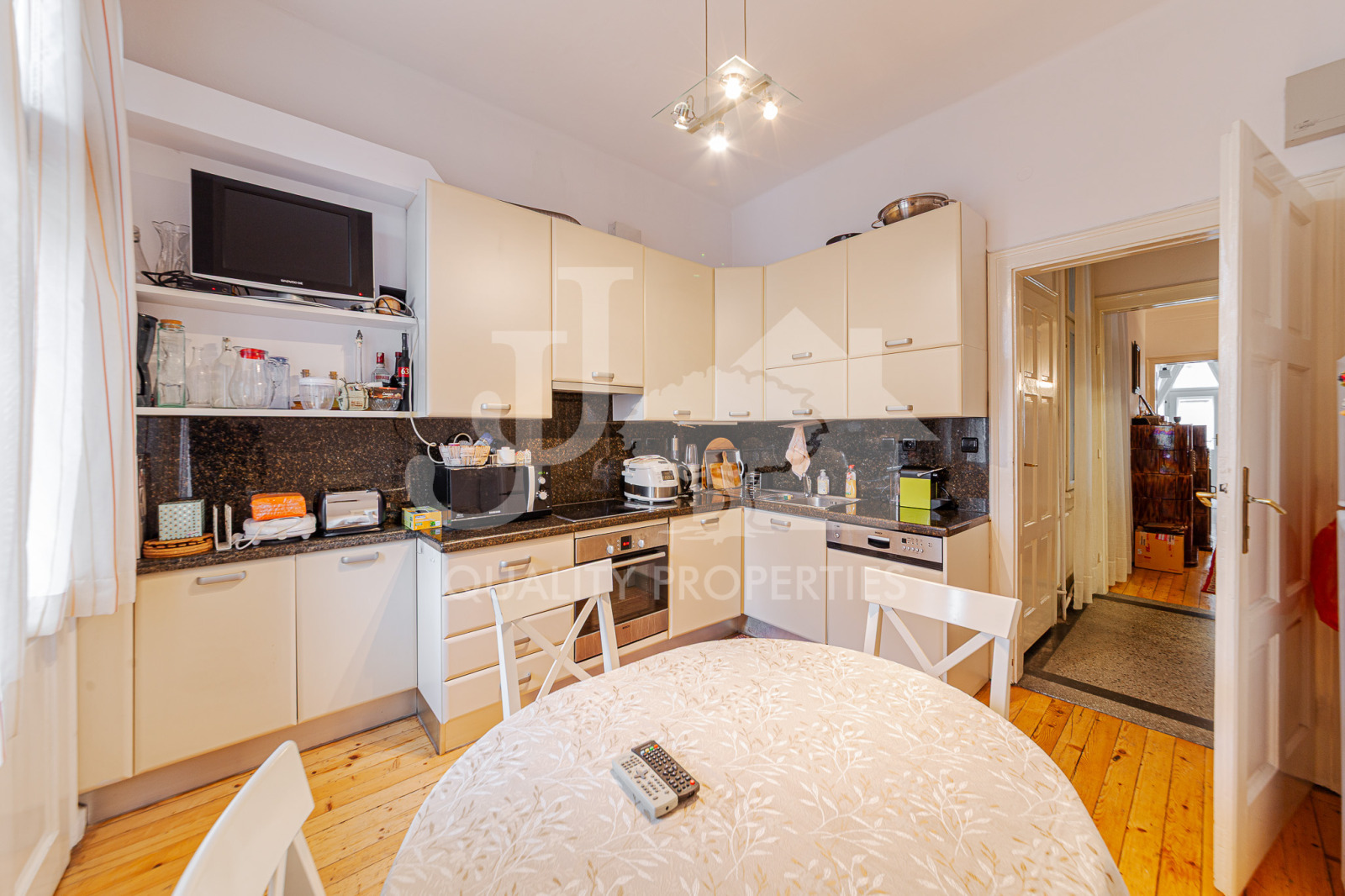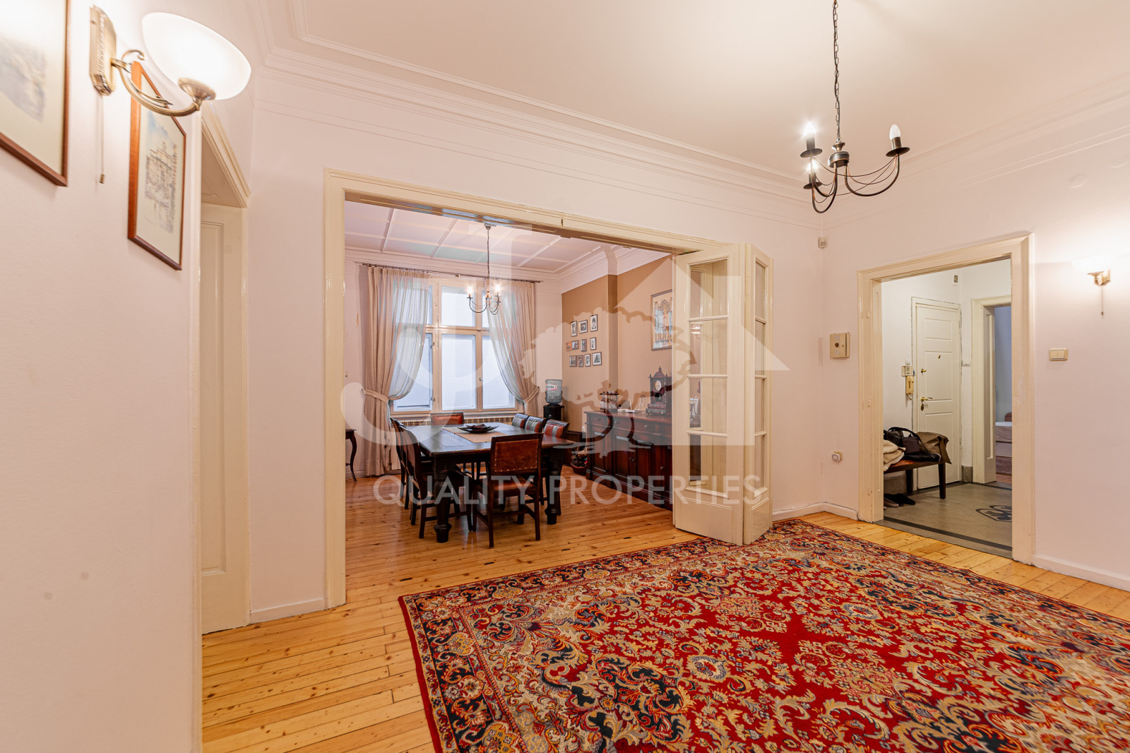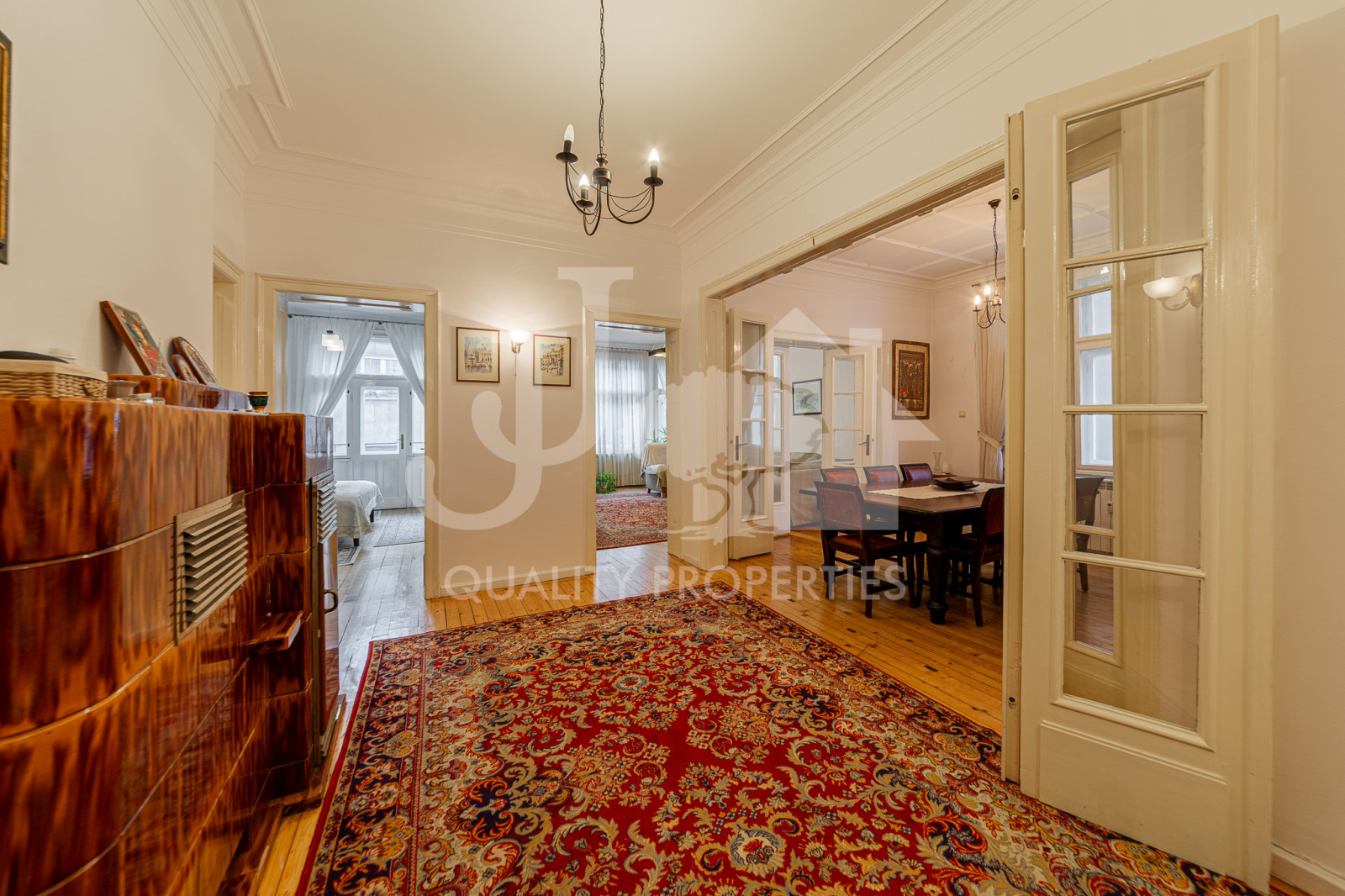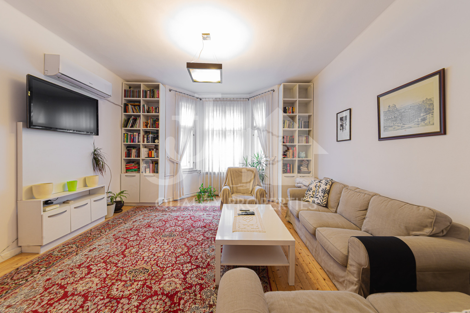 JJ Corporation предлага на Вашето внимание просторен тристаен апартамент с площ от 143 кв.м, находящ се на ул. Хан Аспарух, на метри от пешеходната зона на бул. Витоша. Прекрасен район, отличаващ се с множество магазини, заведения и отлична комуникация (метростанция на няколко минути пеша), същевременно апартаментът е изключително тих и спокоен. Сградата е малка, с усещане за къща, с добре поддържани общи части, собствен озеленен двор с беседка. Имотът е напълно обзаведен, намира се на трети етаж и има следното разпределение: входно антре, вестибюл с преход към трапезария, холна част и спалня с тераса към нея, отделна кухня с всички необходими ел. уреди и балкон, втора спалня, баня с тоалетна, отделна тоалетна. Отоплението е на ТЕЦ , има поставени климатици в дневната и втората спалня. Допълнително се заплащат такса вход - 15 евро. СОТ- 22 евро без ДДС на месец.