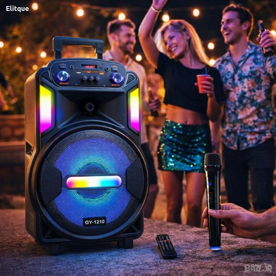 Мощна парти тонколона – двоен 8" говорител, 40W RMS, Bluetooth, караоке и LED светлини