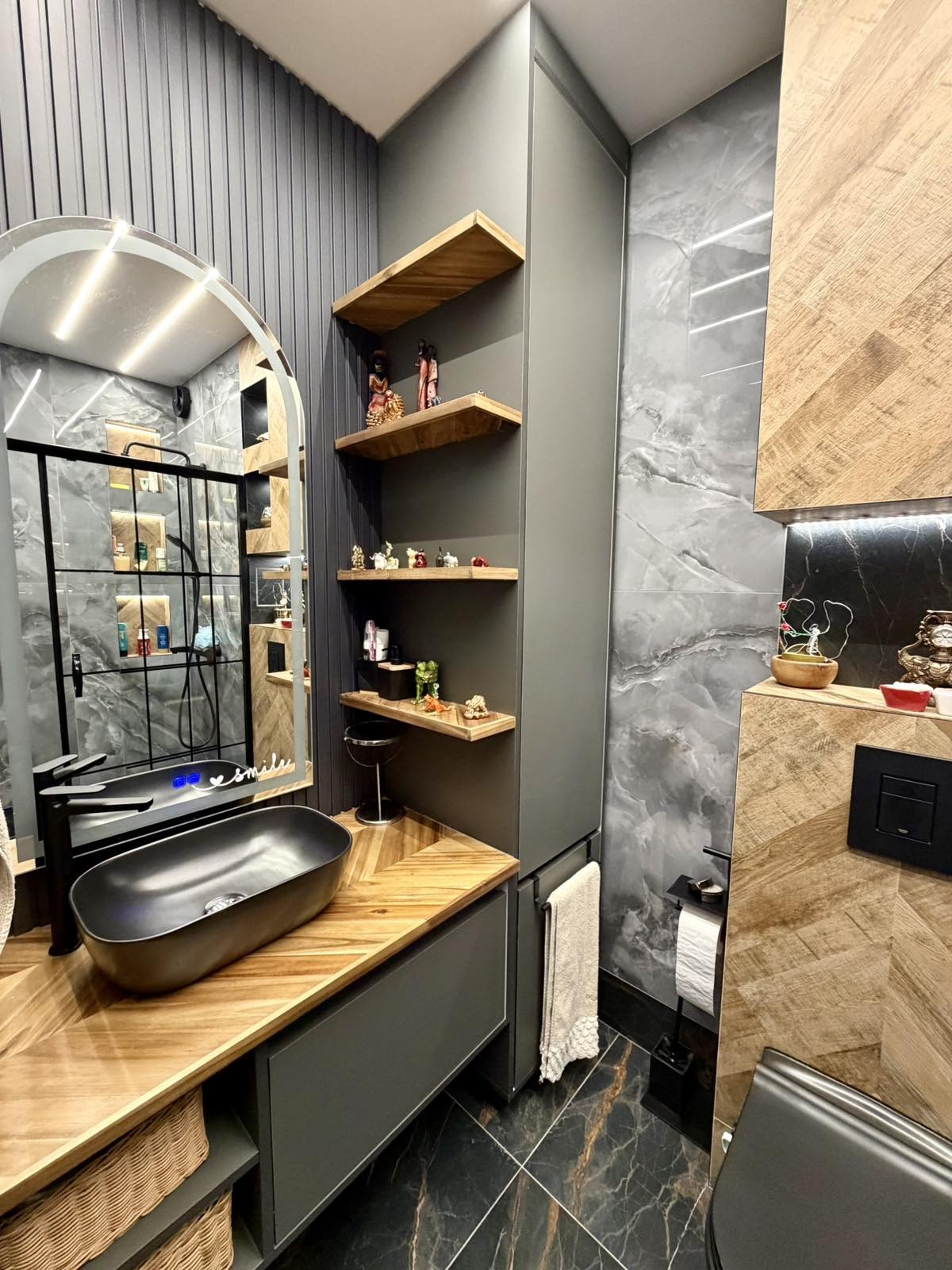 Баня с тоалетна, изпълнена до последния детайл GROHE, масивен плот