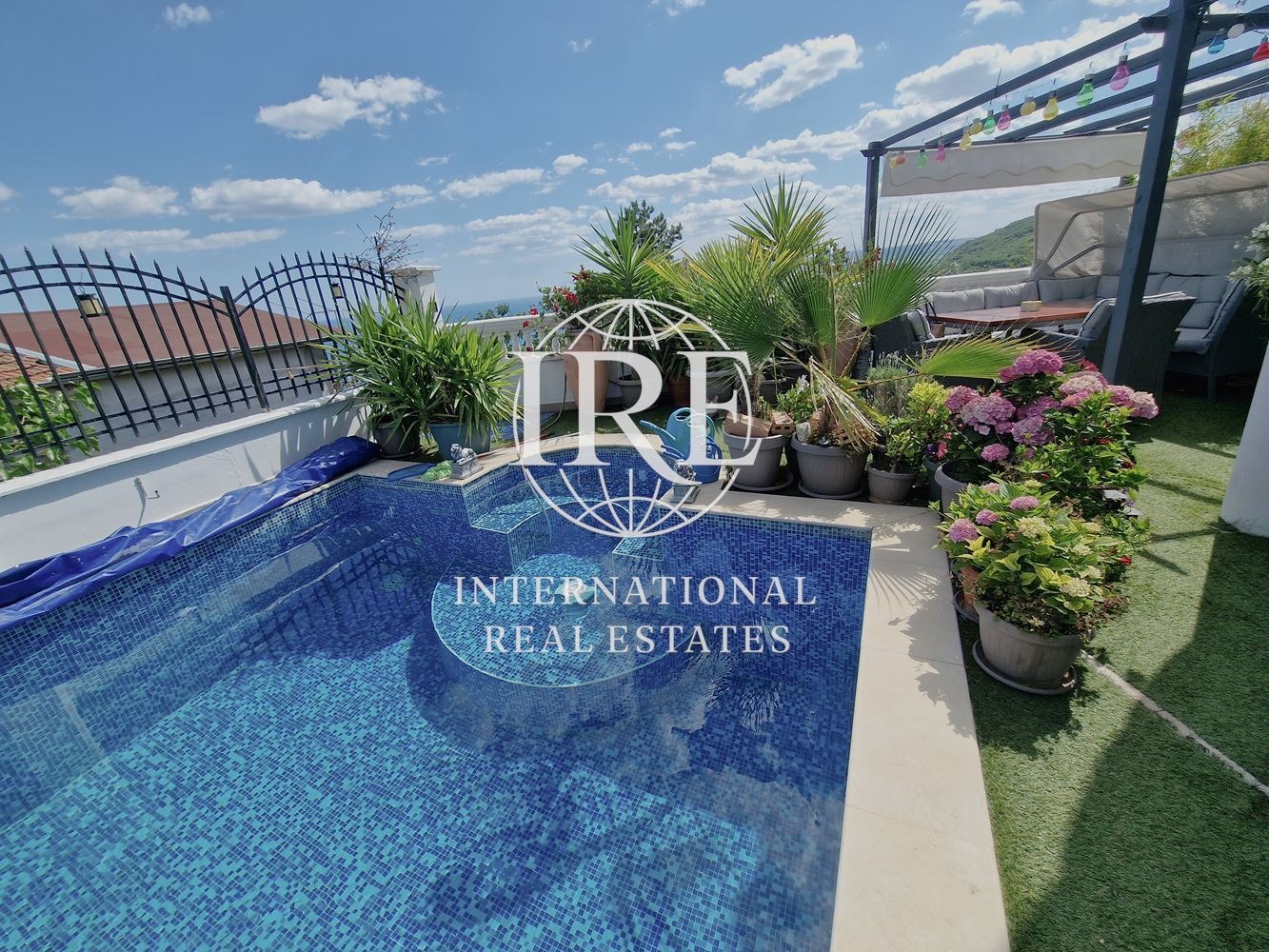 Великолепна триетажна къща за продажба с басейн и гараж! Уникална морска панорама! Живописна природа, екологично чист район, тишина и спокойствие!