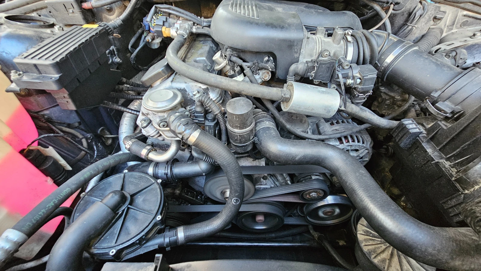 Извършени ремонти и закупени части: Смяна на макферсон ляв и десен Гарнитура за капака на клапаните Свещи Бубина Изработване и поставяне на тръба на мястото на катализатора Маркуч, вентилация на колянно-мотовилковия блок Помпа за чистачки Оплътнение и филтър за помпата Пистов ремък Ribbed v-belt 5K X 950 part number: 11281433948 Ролки на обтегачи 2 бр.