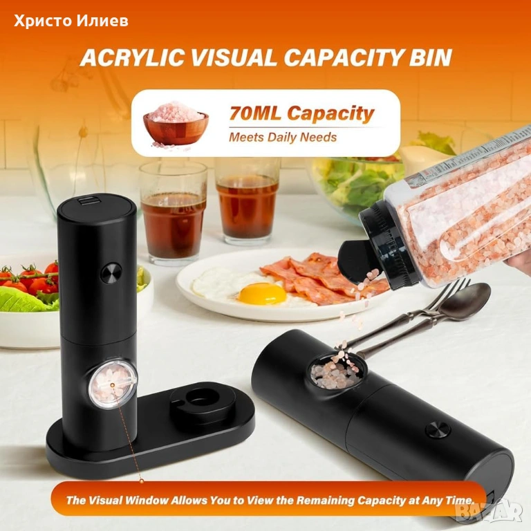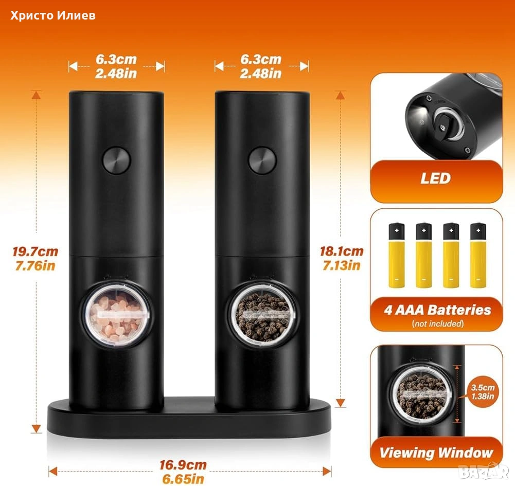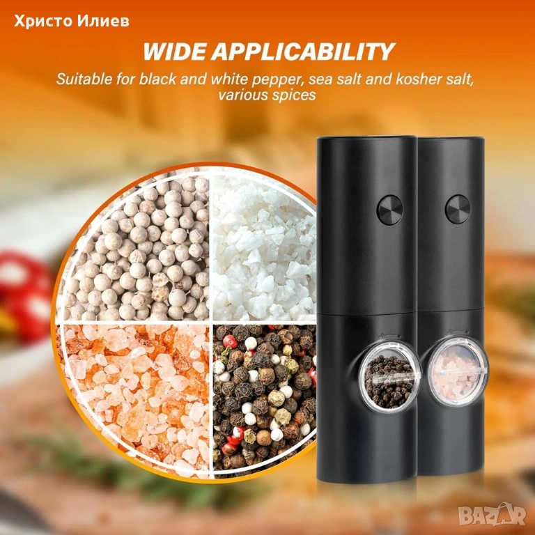 - [Красив дизайн] Идеален за готвене или печене на скара, комплектът мелнички за сол и черен пипер, работещ с батерии, добавя стилен щрих към вашата кухня и маса за хранене. Перфектен избор за подаръци за рожден ден, Деня на благодарността, Коледа, Нова година за вашето семейство или приятели.