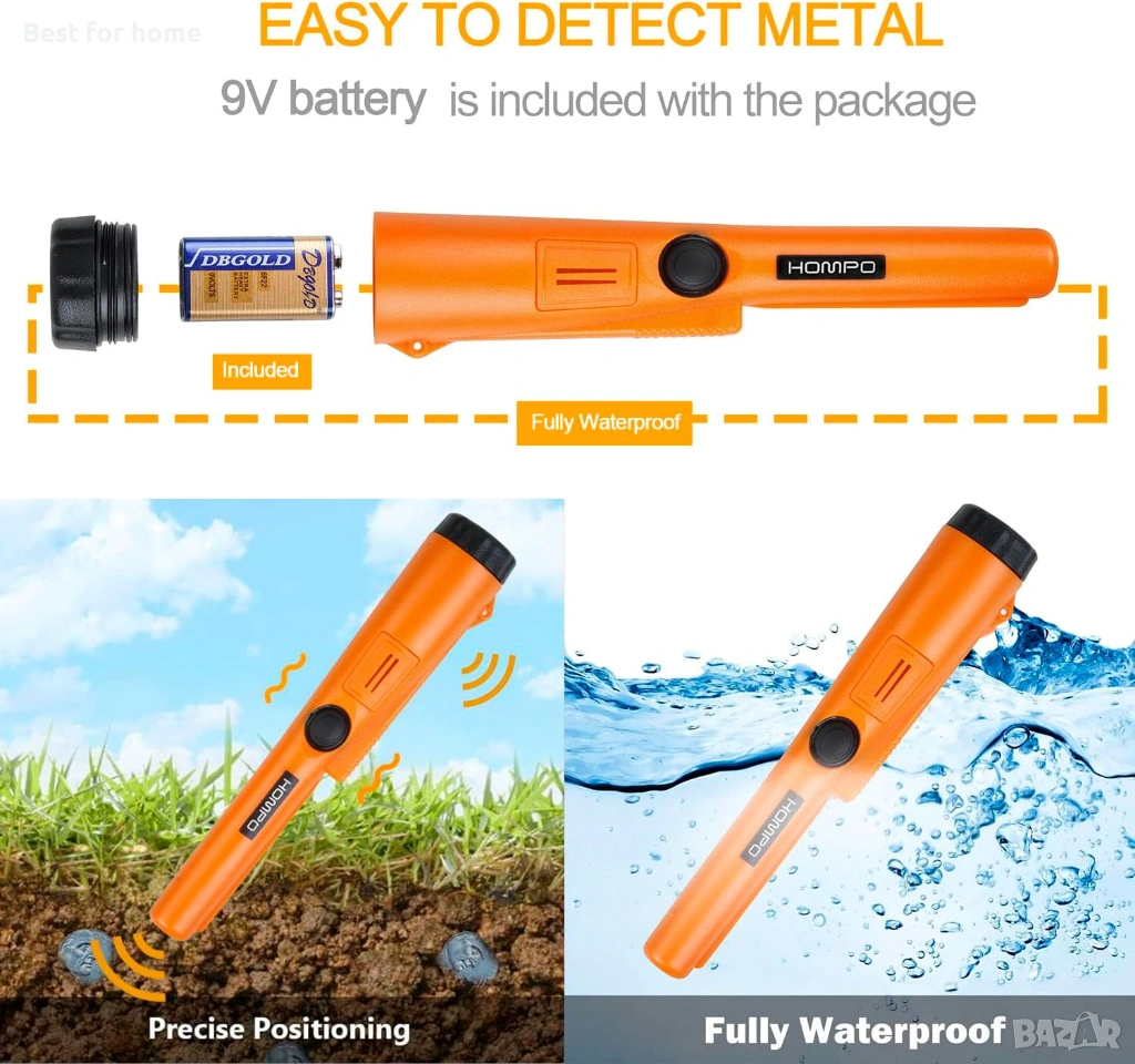 HOMPO Металотърсач Pinpointer - Напълно водоустойчив ръчен