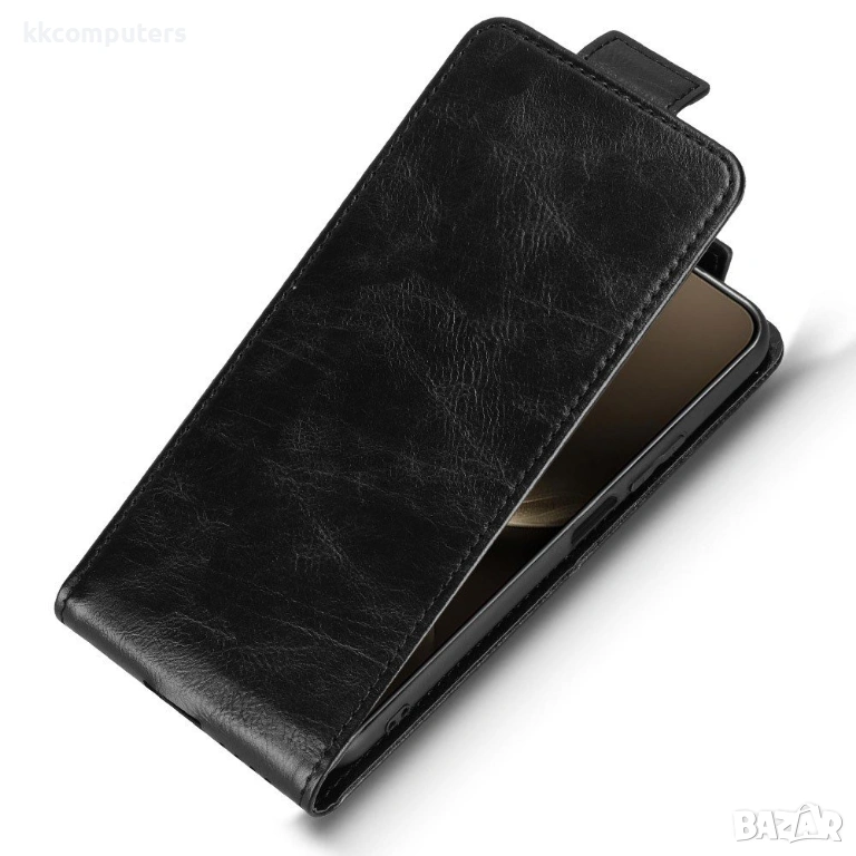 Вертикален флип дизайн за лесен достъп: Уникалният вертикален флип (вертикално отваряне) с магнитна тока позволява бързо и лесно отваряне с една ръка, осигурявайки незабавен достъп до екрана, докато капакът виси удобно отзад, защитавайки гръба.