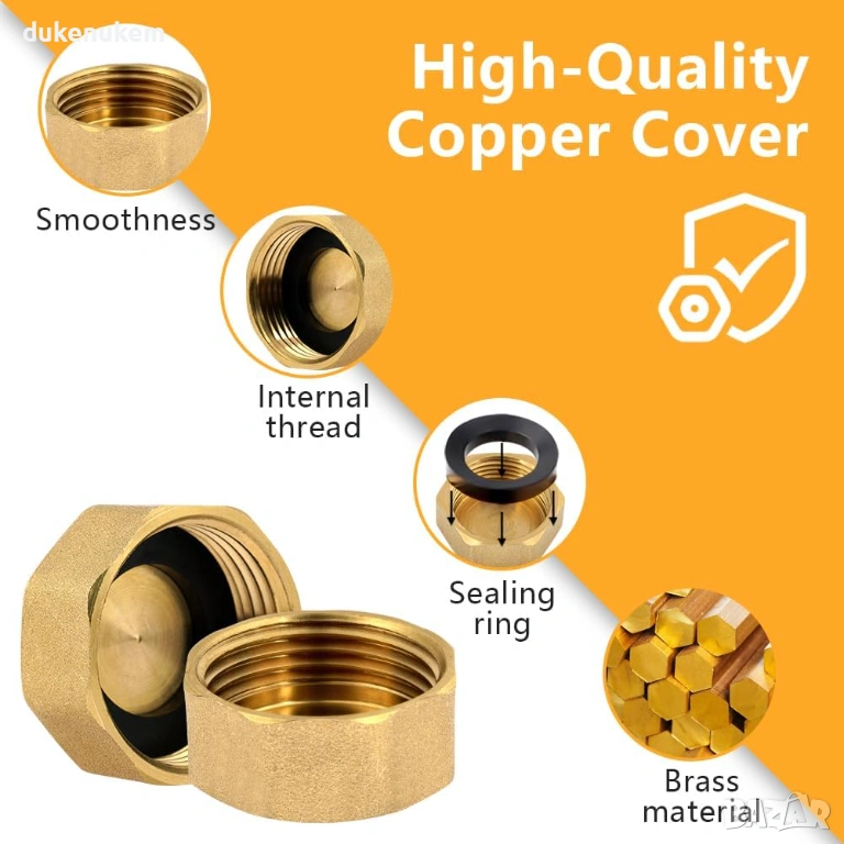 Изработена е от висококачествен месинг, устойчив на корозия, ръжда и високи температури, което я прави значително по-дълготрайна от пластмасови или стандартни метални тапи.