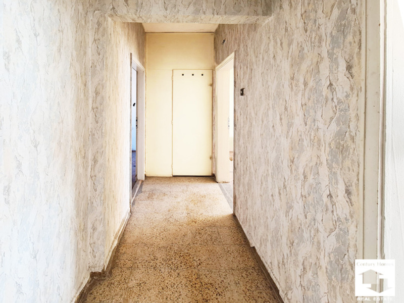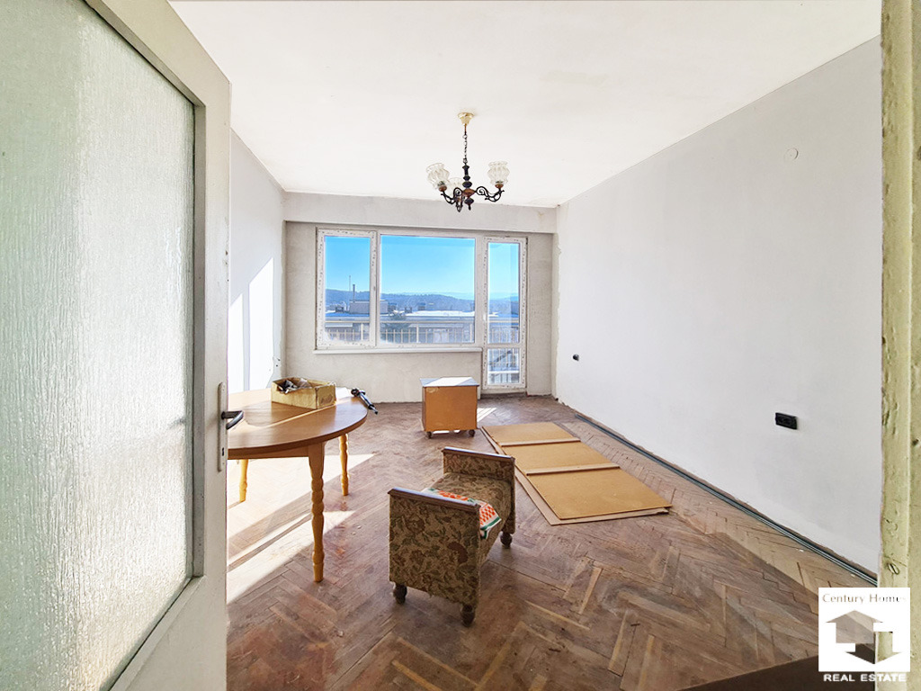 Интериорът е с нова PVC дограма, дървени врати, подова настилка с паркет и мозайка, стени с мазилка и тапети. Апартаментът се продава необзаведен и подготвен за основен ремонт.