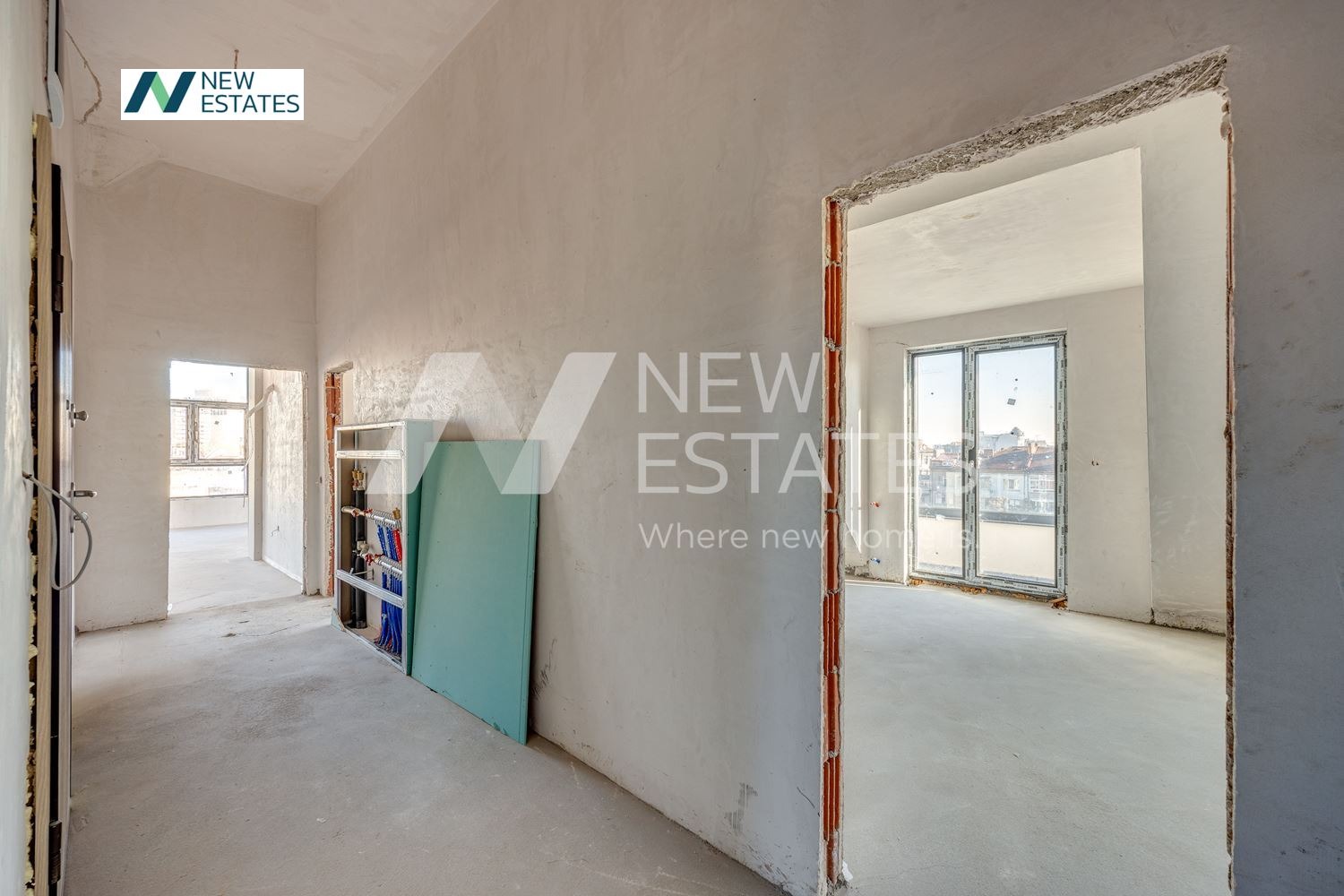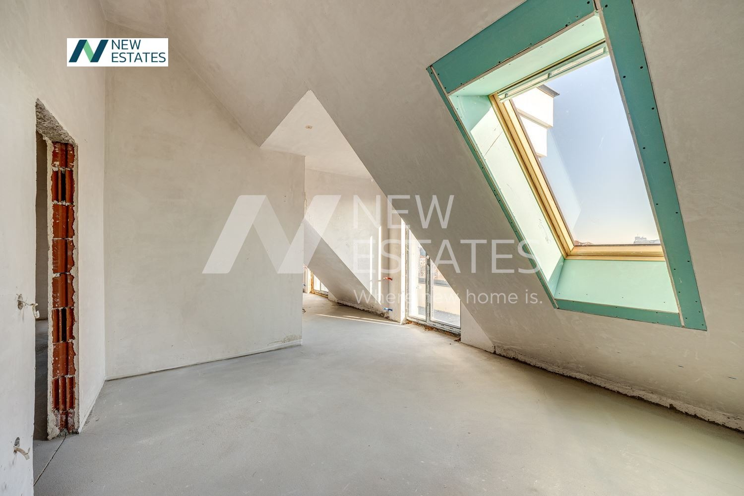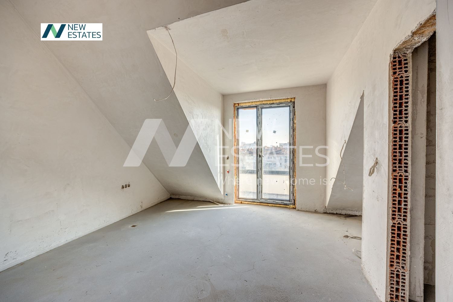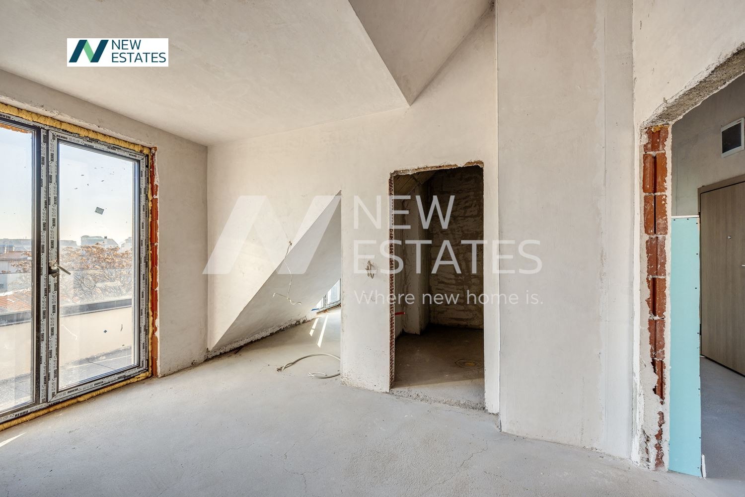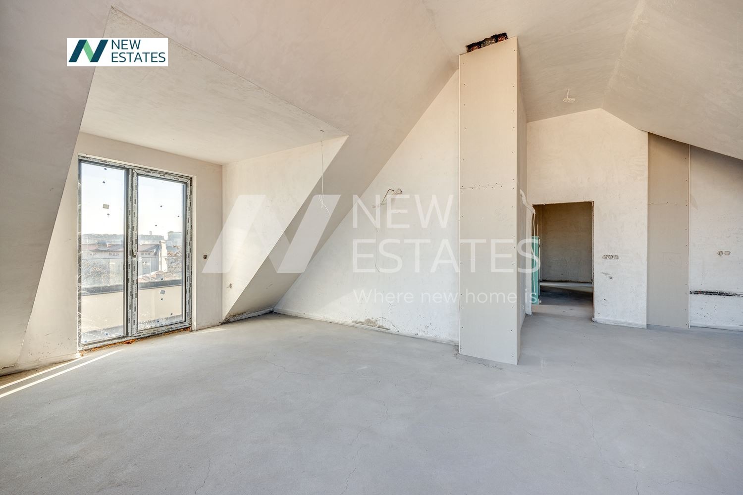 Апартаментът е разположен на последен етаж, което гарантира тишина, уединение и изключителни панорамни градски гледки. Отличава се с много високи тавани, които създават усещане за простор, въздух и светлина, както и с екстравагантно и функционално разпределение, подходящо за хора с усет към изкуството и индивидуалния стил.