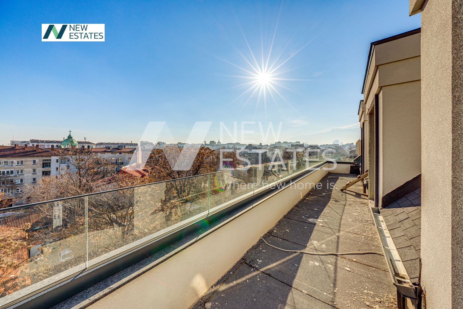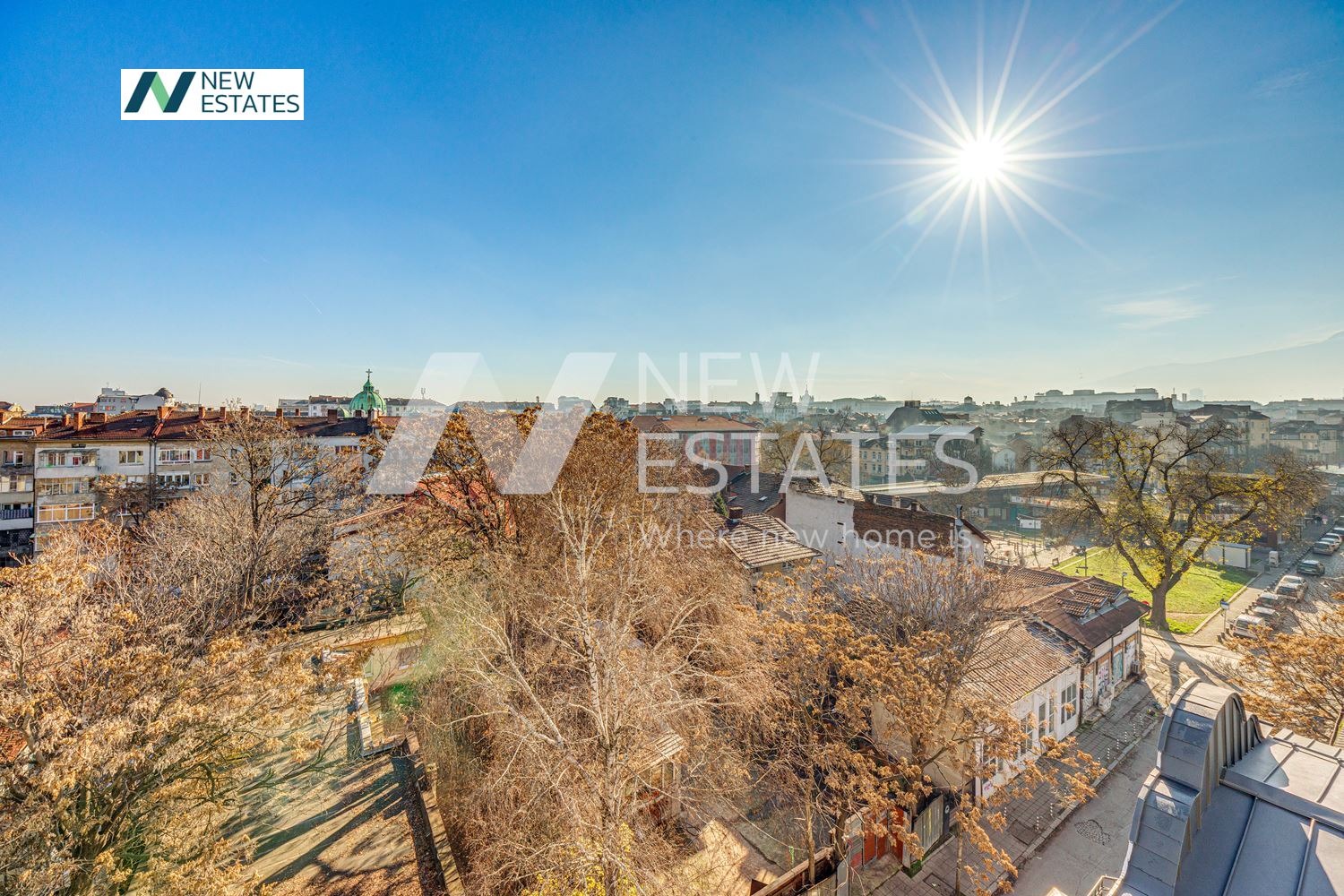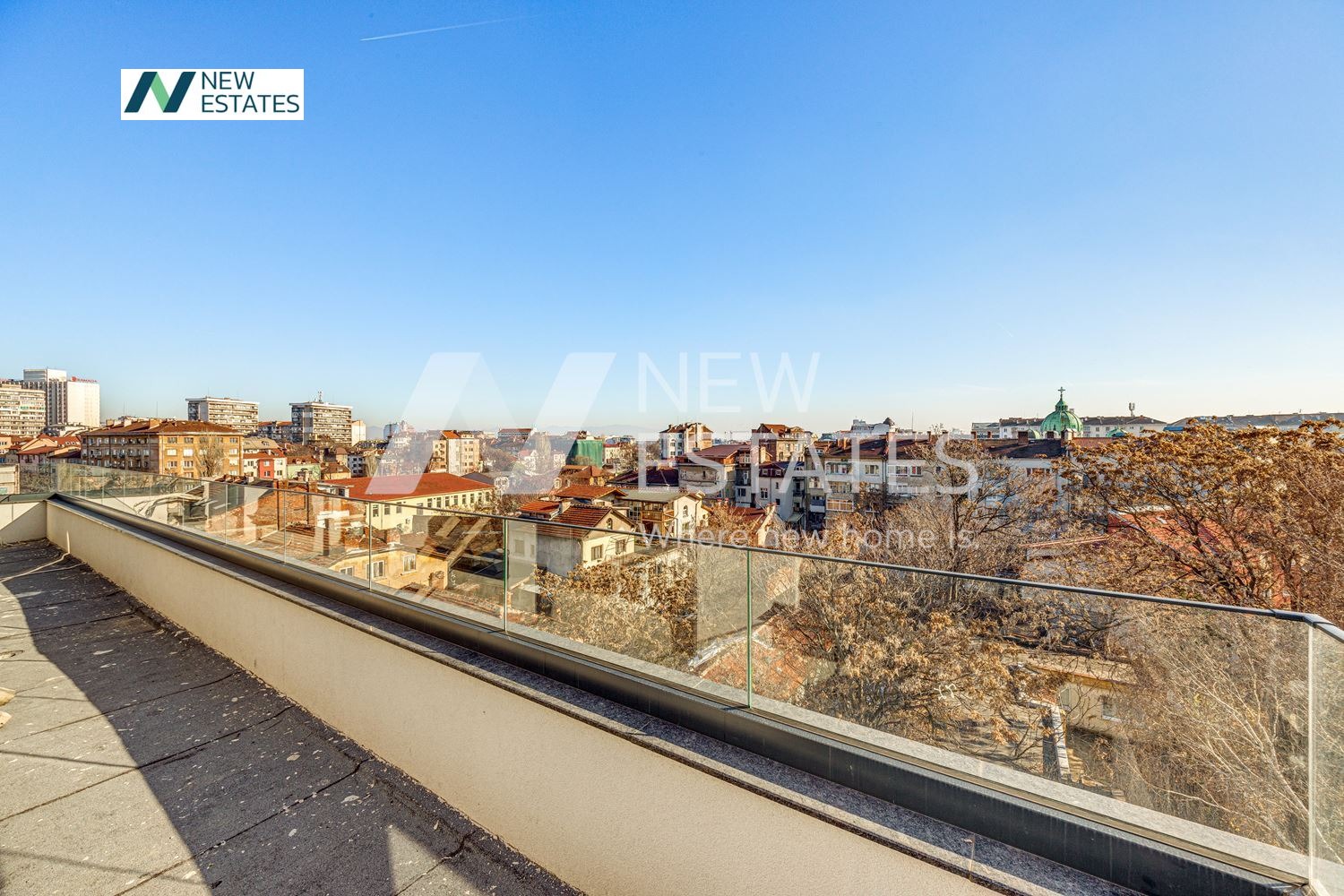Жилището е изключително светло и просторно, с големи прозорци и уникална тераса, идеална за отдих, срещи с приятели или просто наслаждаване на динамиката на града отвисоко.