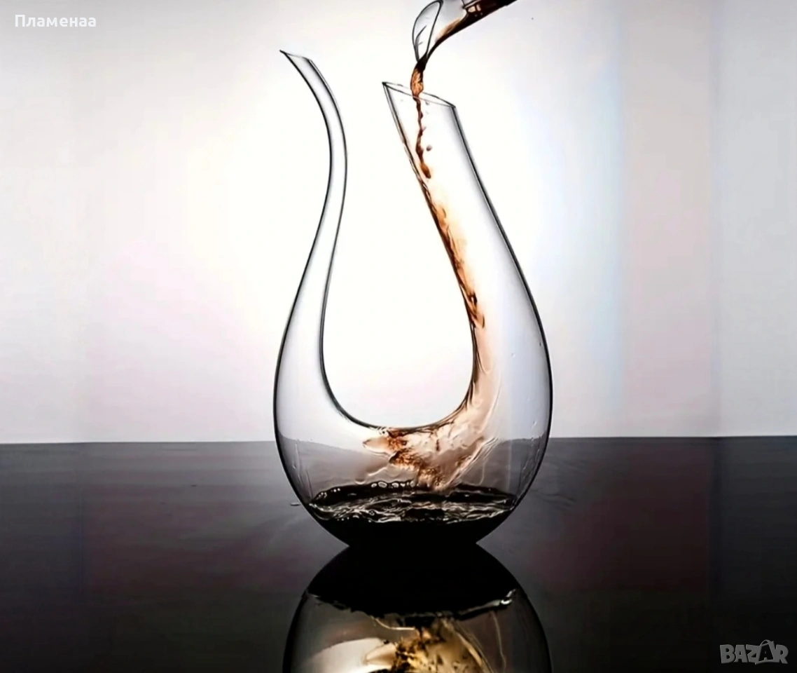 Продавам изключително красив и модерен декантер за вино с елегантна извита форма. Изработен от висококачествено прозрачно стъкло, което подчертава цвета и характера на виното. Формата му осигурява отлична аерация, благодарение на която ароматите се разгръщат напълно, а вкусът става по-мек и балансиран. Подходящ както за червени, така и за бели вина. Перфектен избор за специални поводи, романтични вечери или като стилен подарък за ценители на виното.