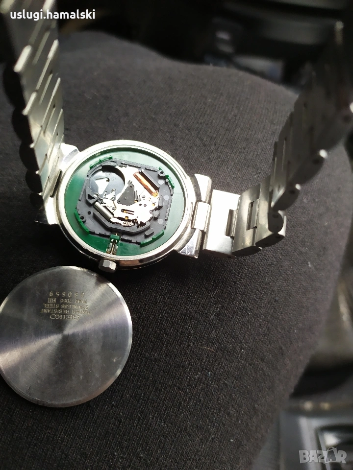 Батерията е изтощена,имам я за модел,техническо състояние неизвестно.Има попаднал нещо като косъм между стъклото и циферблата.