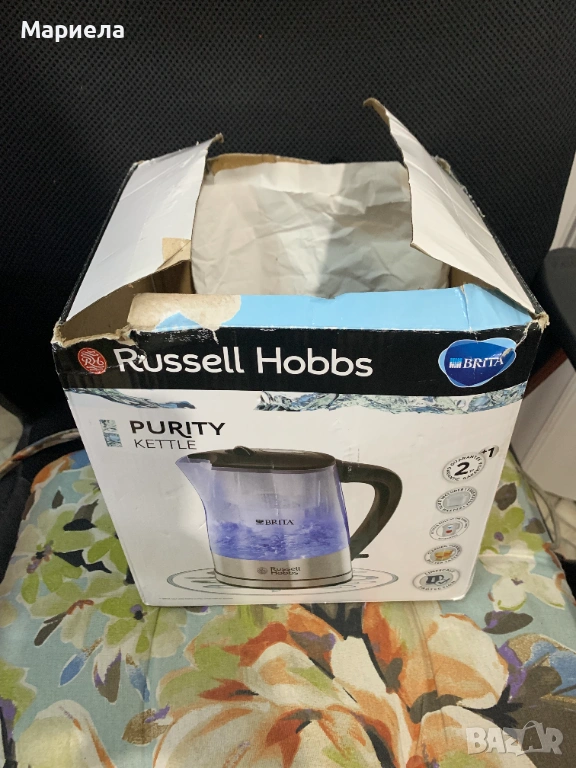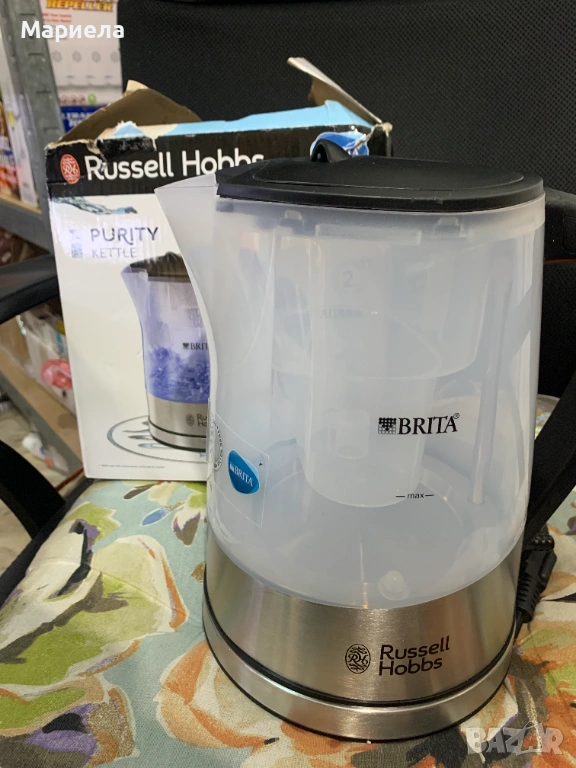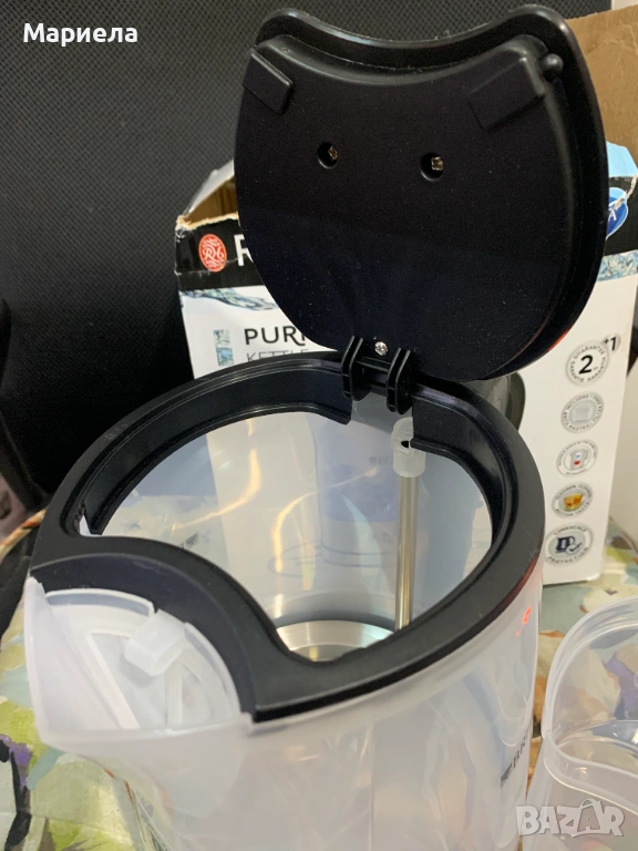 Електрическа кана е с пластмасов non-BPA корпус и филтър Russell Hobbs Purity Brita 22850-70.