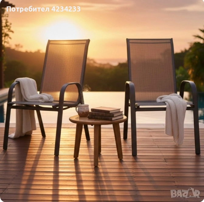 Стифиращи се градински столове от стомана и текстил – комплект 2 броя