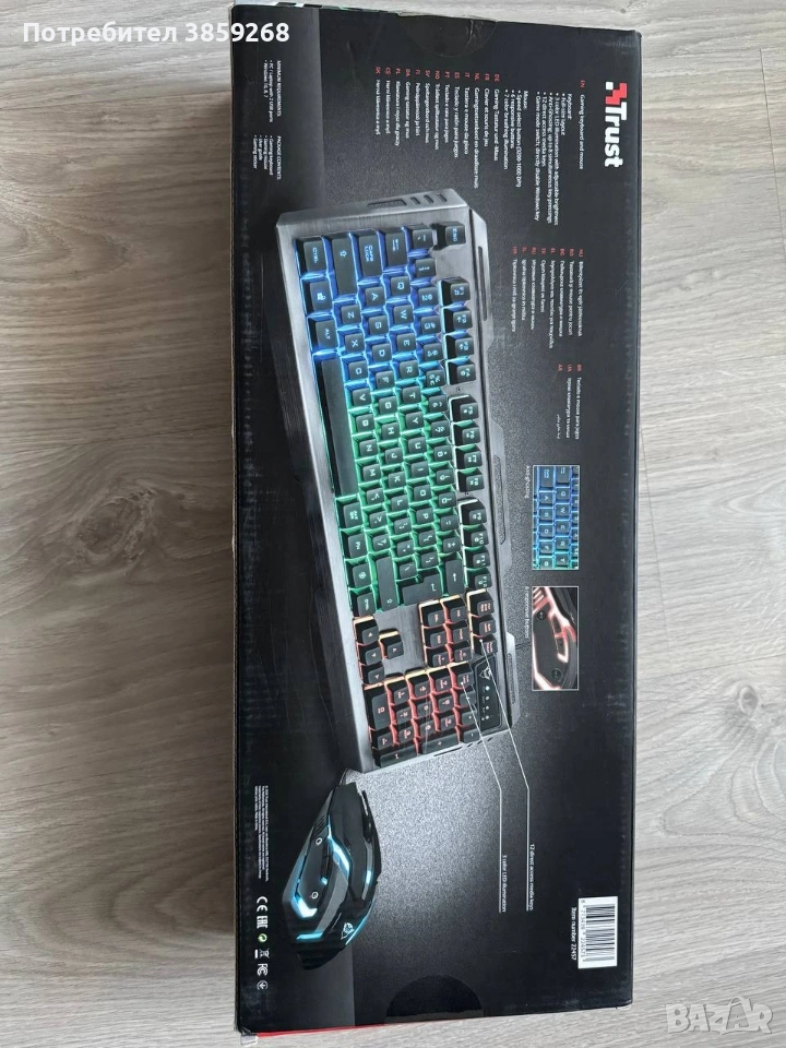 Продавам 2 комплекта всеки по 25 евро,RGB геймърска клавиатура TRUST TURAL Многоцветна подсветка (RGB ефект) Пълноразмерна с цифров блок Gaming режим 12 мултимедийни функции Геймърска мишка TRUST До 3200 DPI 6 програмируеми бутона Ергономичен дизайн Състояние: Чисто нов Тестван само за снимки Оригинална кутия Подходящ за: Гейминг Ученици и студенти Домашен или офис компютър Подарък Предаване: Преглед и тест – ДА За цената – реално: В магазин подобни комплекти са 85-90лв