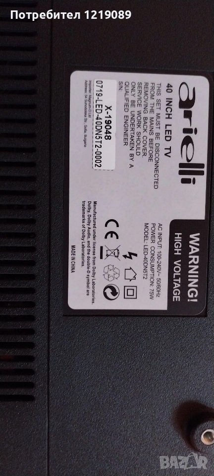 части за телевизор arielli 40 инча → Обява 53188936