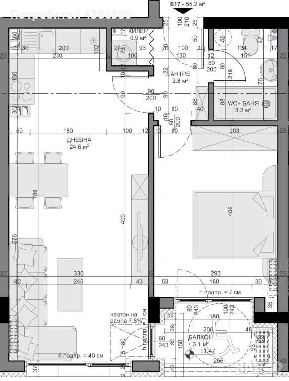 -Площ: 64,66кв.м.