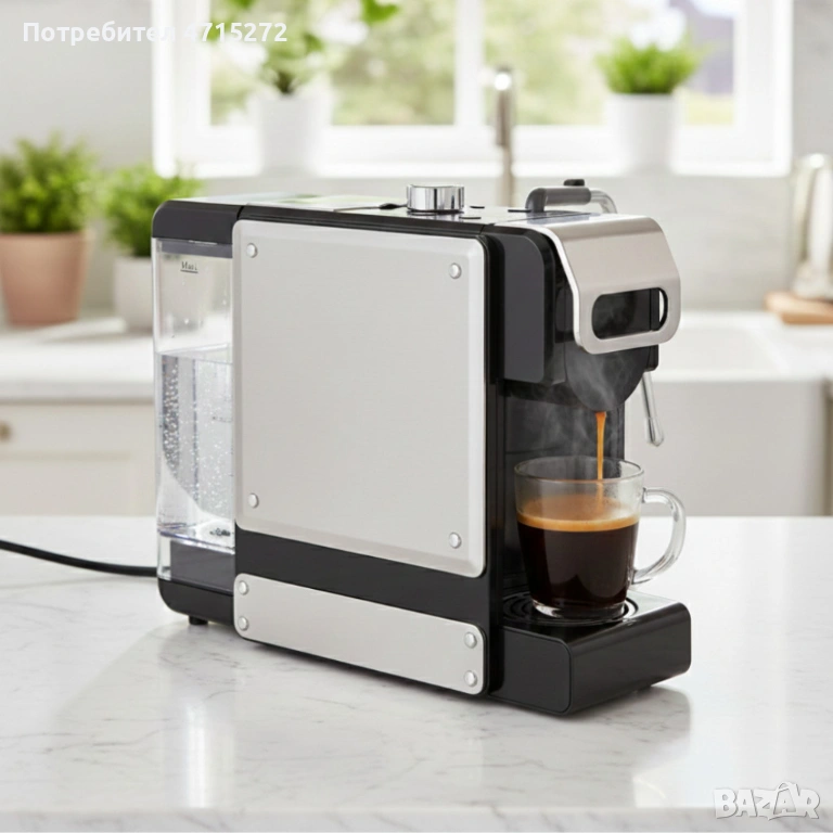 Функции: гореща вода, ръчна дюза за мляко, настройка на нивото на кафе;