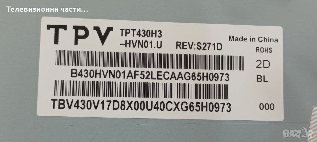 LG 43LH500T-ZA с дефектен екран.Панел TPT430H3-HVN01.U REV:S271D.Матрица T430HVN01.2