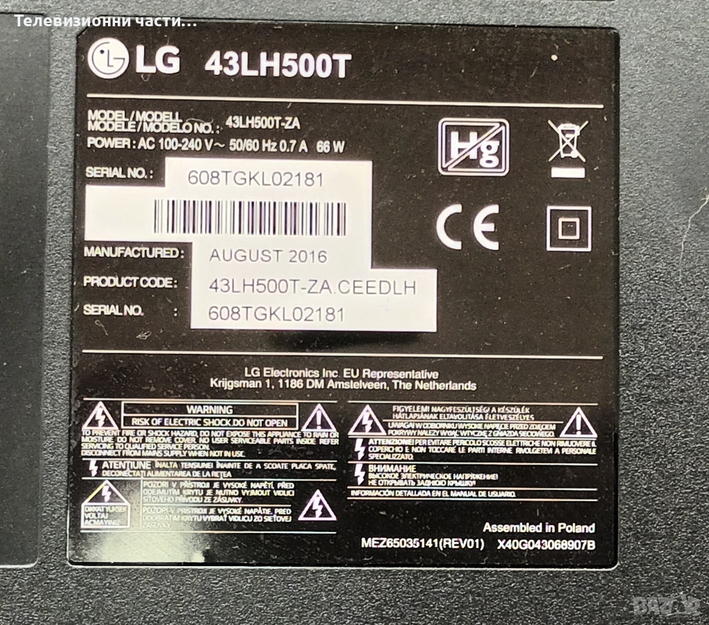 LG 43LH500T-ZA с дефектен екран TPT430H3-HVN01.U T430HVN01.2/715G8003-M01-B00-004K/715G7574-P01-W03-