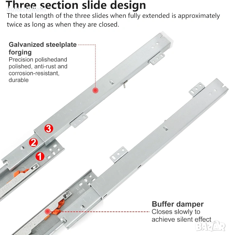 Съвет: Преди покупка измерете точно дължината на чекмеджето и корпуса, за да изберете правилния размер.