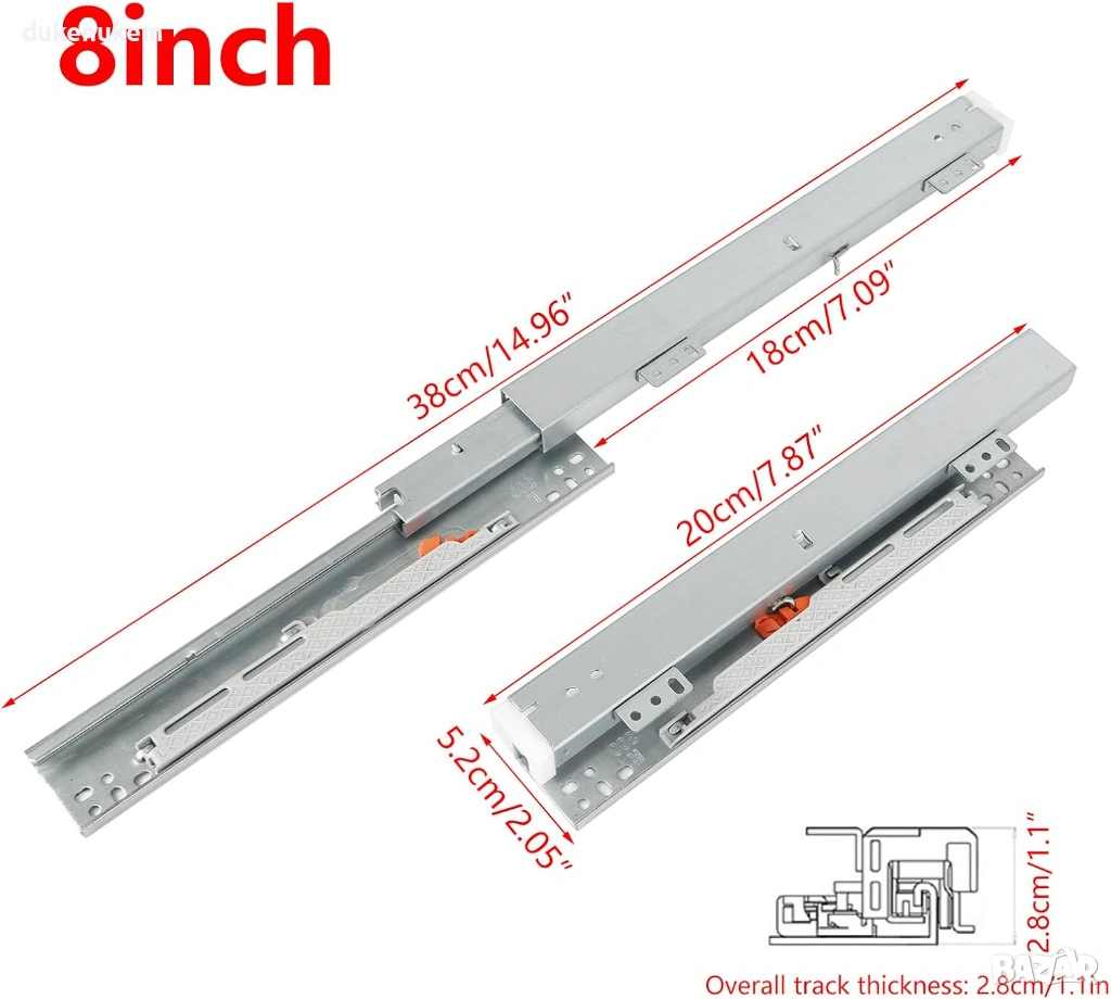 Комплект Долни водачи за чекмеджета с пълно изтегляне и плавно затваряне – 20 см