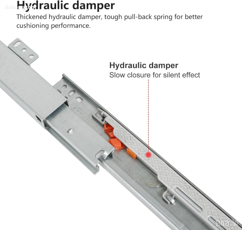 Водачите разполагат с хидравлична система за плавно затваряне (soft close), която осигурява изключително тиха работа – до 30 dB, предпазва мебелите от удари и удължава техния живот.