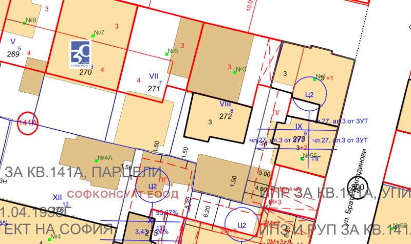 Съгласно ПУП в парцела се предвижда изграждане на нова жилищна сграда на три етажа с приблизително РЗП 600кв.м. и запазване на съществуващата триетажна къща.