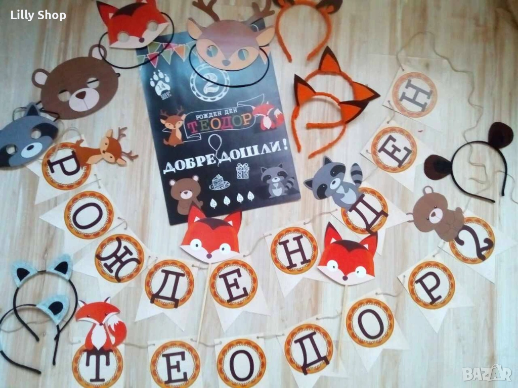 Покани, банер за рожден ден, Горски животни / Forest animals