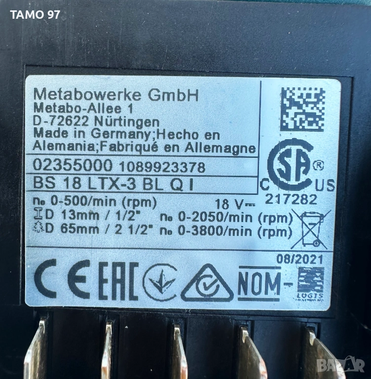 Марка и модел: METABO BS 18 LTX-3 BL Q I