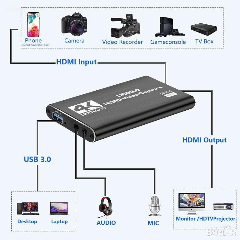 HDMI към USB аудио и видео конвертор за стрийминг 4К