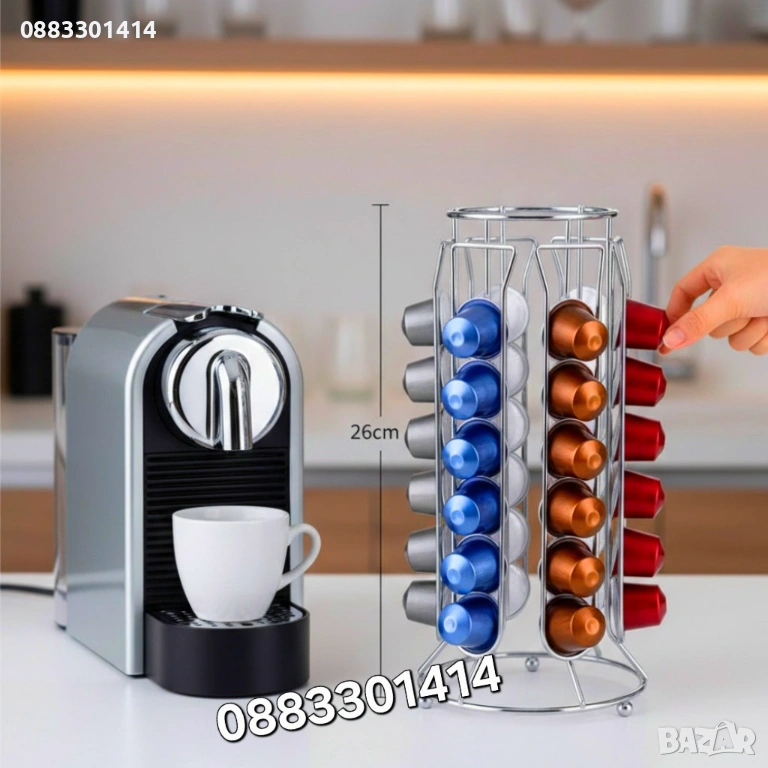 Размери / вместимост: 12,5 × 26см / до 36 капсули Nespresso